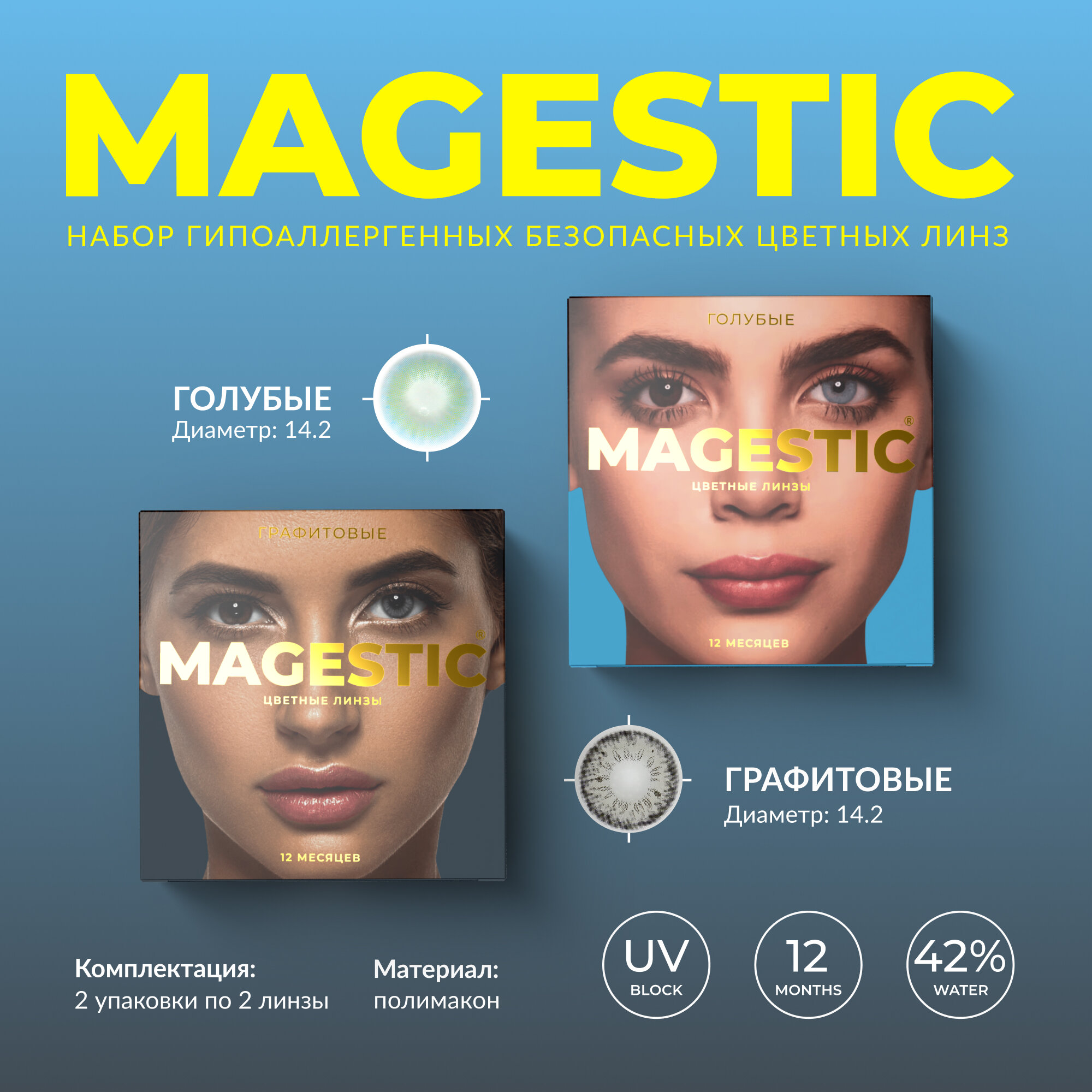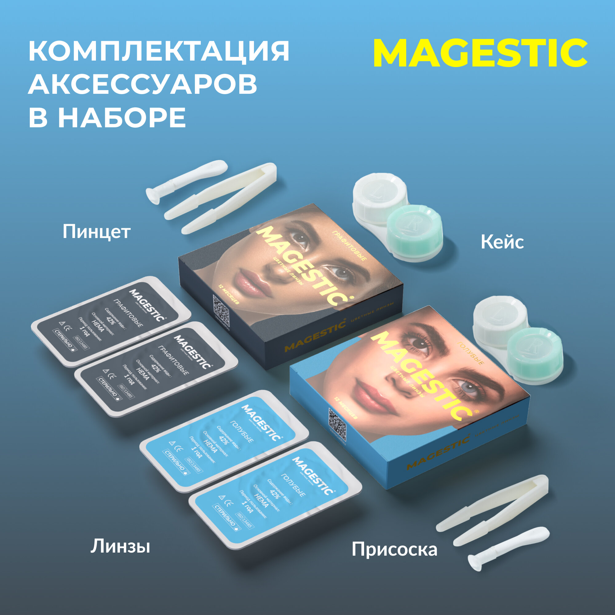 Цветные графитовые + голубые контактные линзы для глаз MAGESTIC 2 пары, 12 месяцев, 0.00, диаметр 14,2 мм, кривизна 8,6 мм