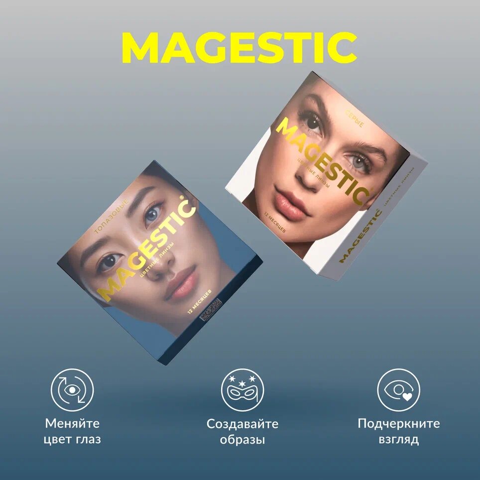 Цветные топазовые + серые контактные линзы для глаз MAGESTIC 2 пары, 12 месяцев, 0.00, кривизна 8,6 мм