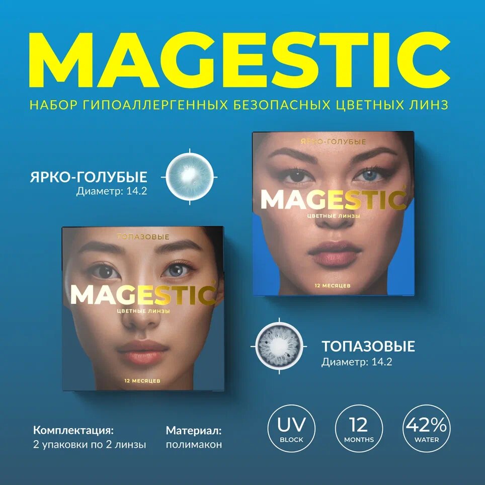 Цветные топазовые + ярко-голубые контактные линзы для глаз MAGESTIC 2 пары, 12 месяцев, 0.00, диаметр 14,2 мм, кривизна 8,6 мм