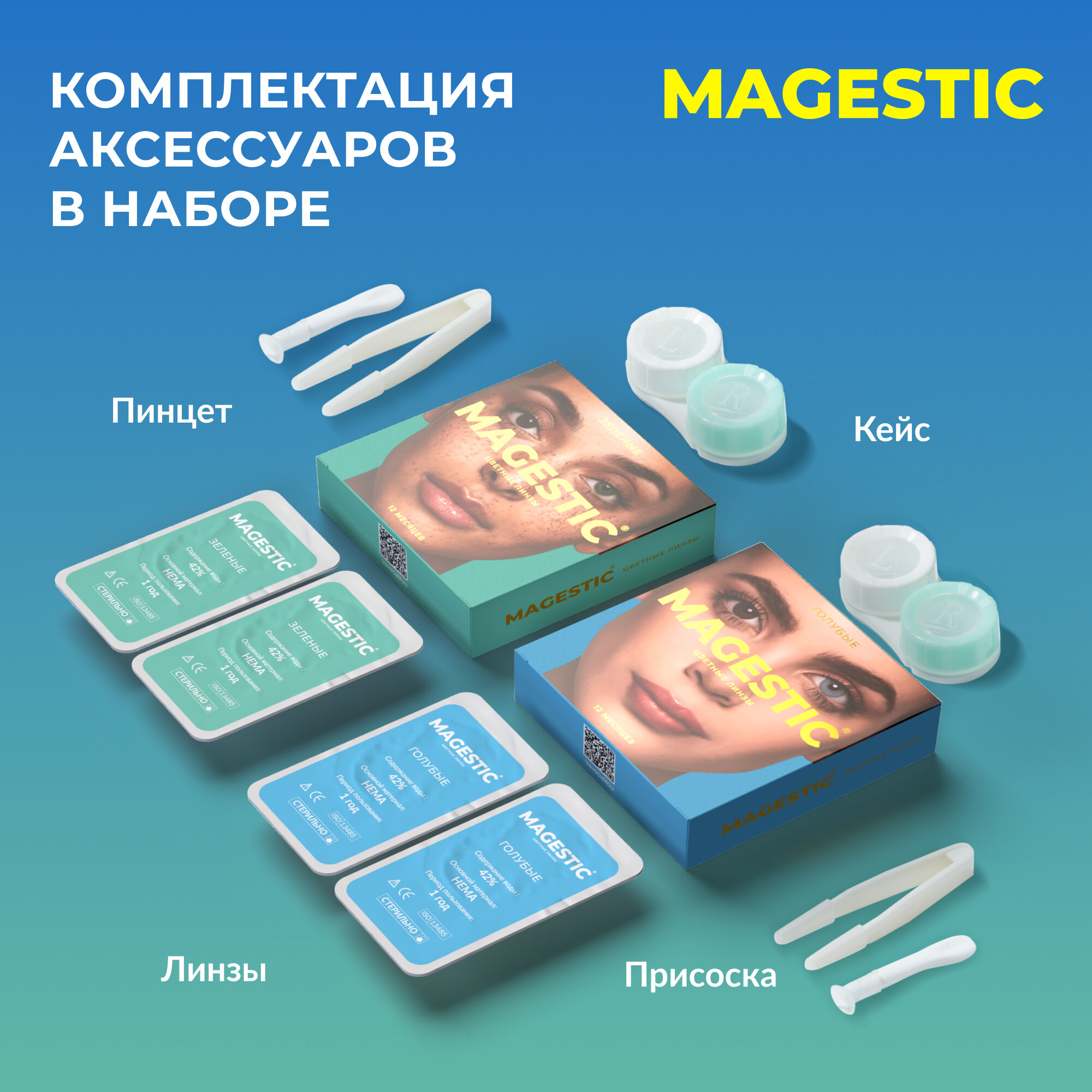 | Дополнительная информация | в комплекте 2 пары (4 шт) линз разного цвета, контейнер, пинцет, ложка |