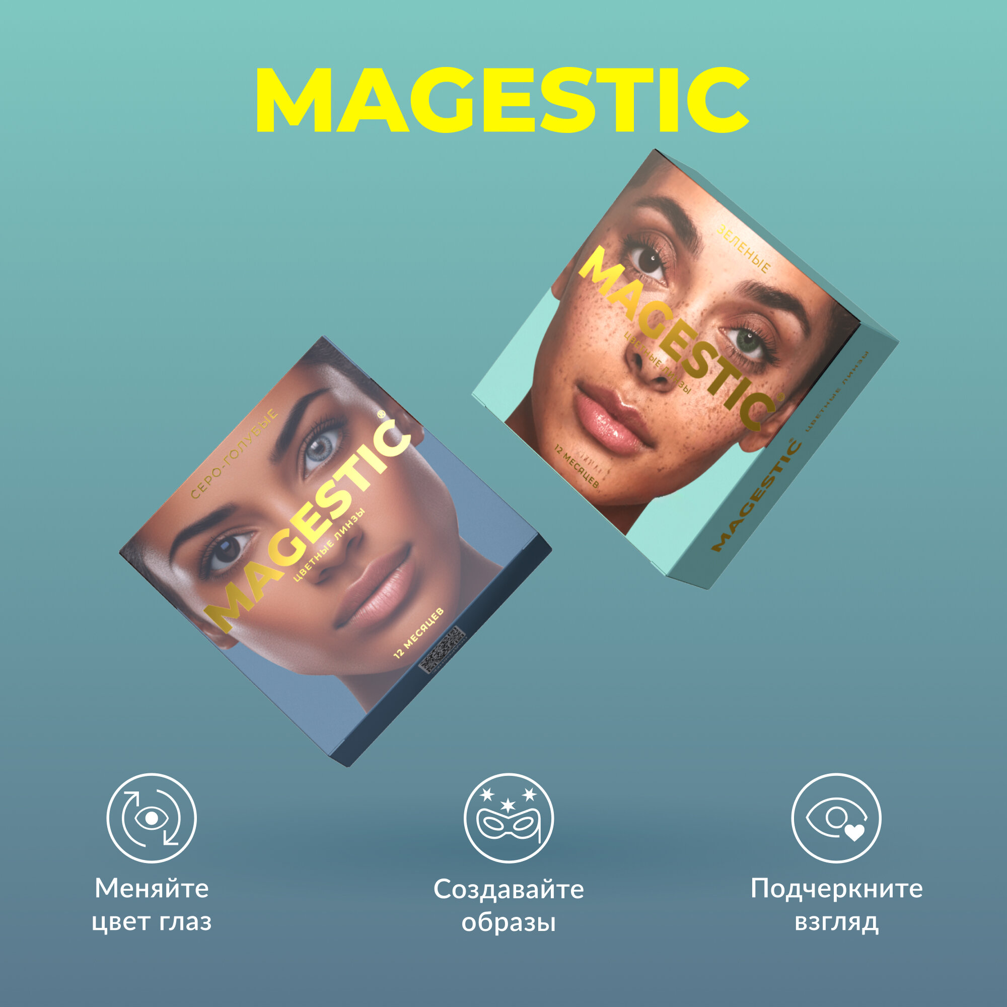 Цветные контактные линзы MAGESTIC зеленые+ярко-голубые, 2 пары