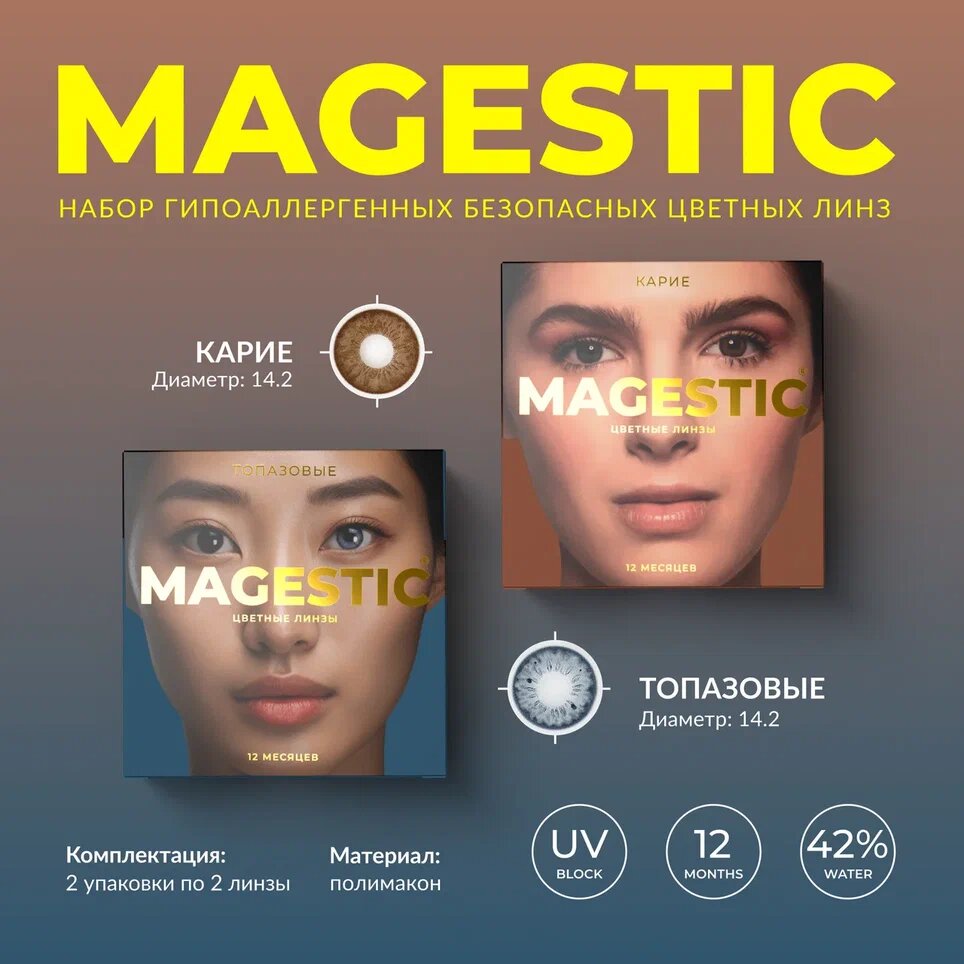 Цветные топазовые + карие контактные линзы для глаз MAGESTIC 2 пары, 12 месяцев, 0.00, диаметр 14,2 мм, кривизна 8,6 мм