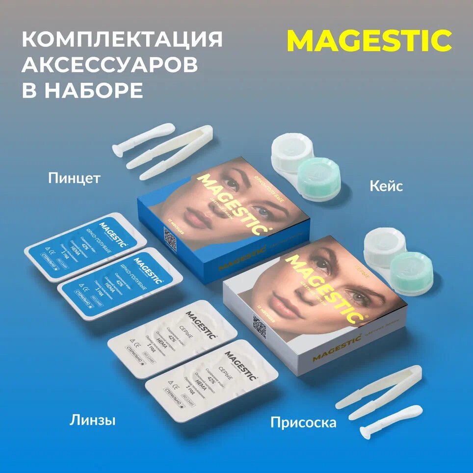 Цветные графитовые + голубые контактные линзы для глаз MAGESTIC 2 пары, 12 месяцев, 0.00, диаметр 14,2 мм, кривизна 8,6 мм