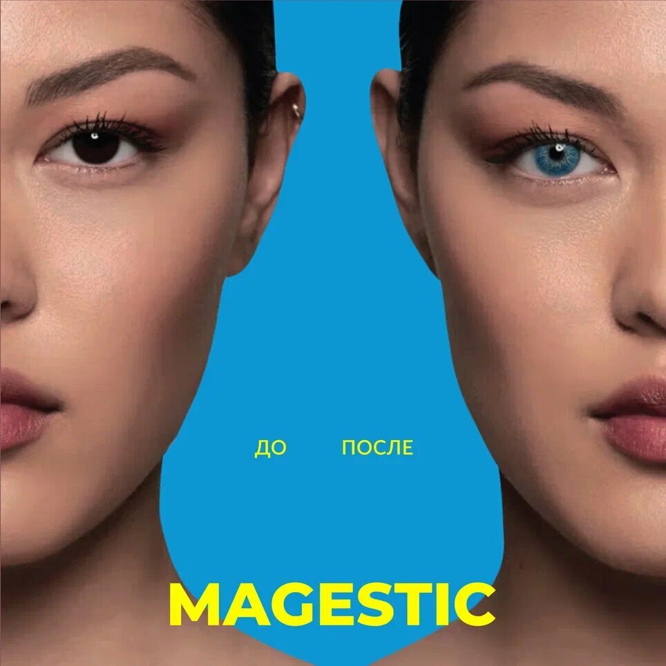 Цветные серо-голубые + ярко-голубые контактные линзы для глаз MAGESTIC 2 пары, 12 месяцев, 0.00, диаметр 14,2 мм, кривизна 8,6 мм