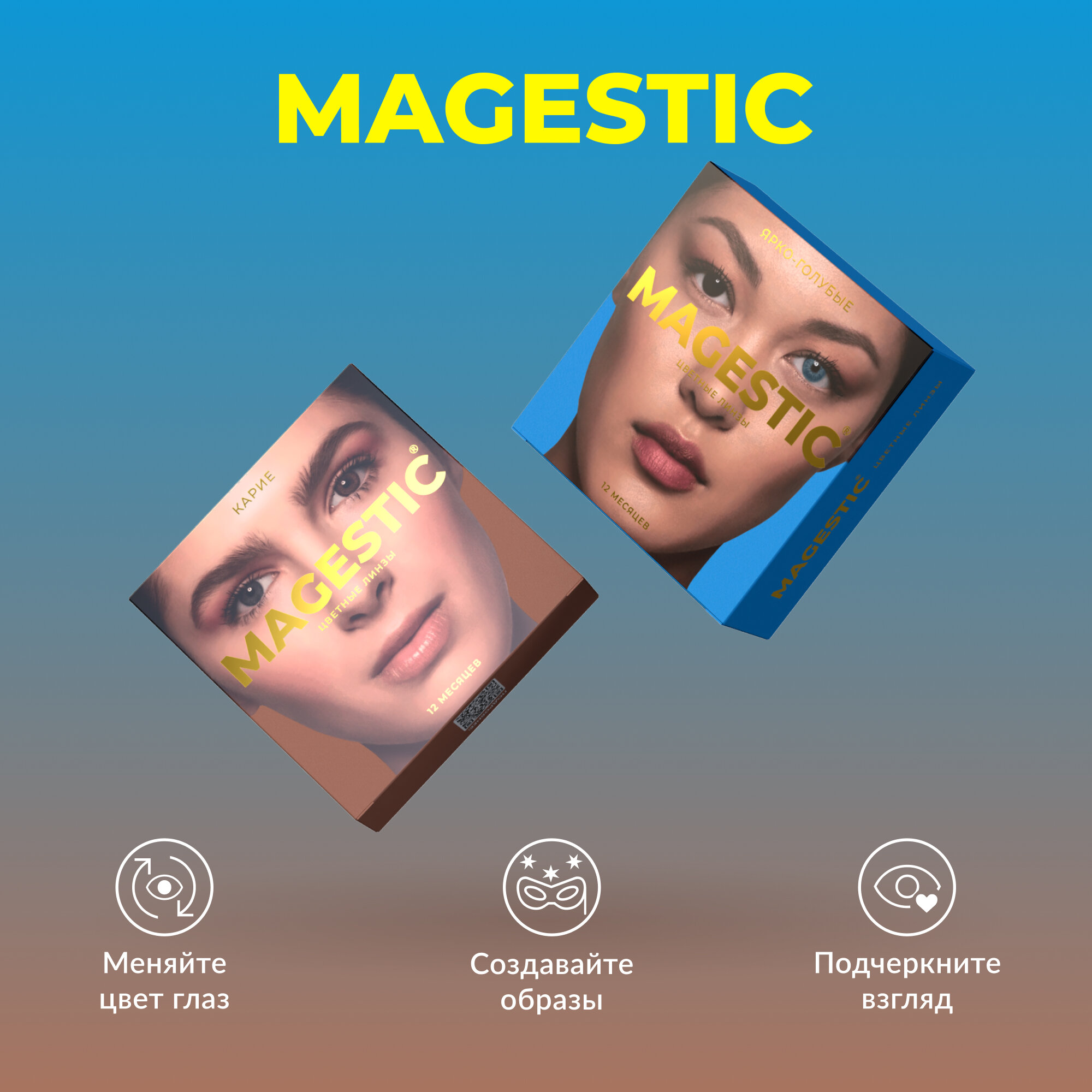 Цветные контактные линзы MAGESTIC топазовые+голубые, 2 пары