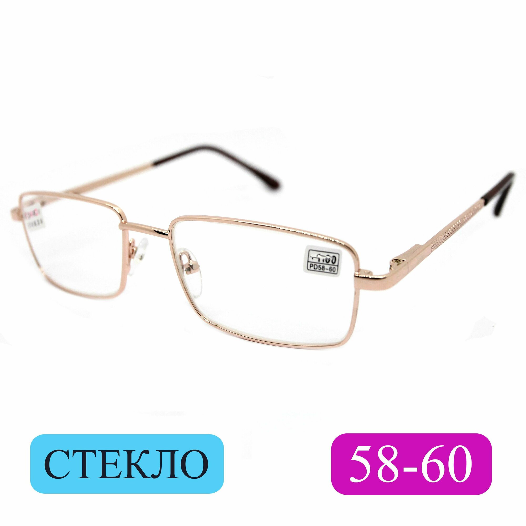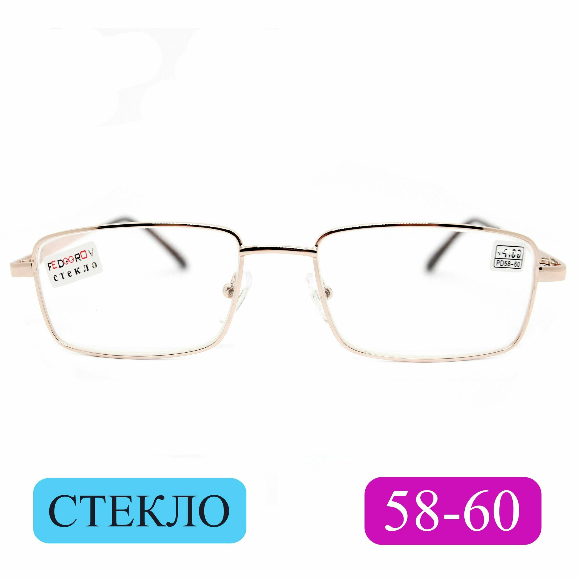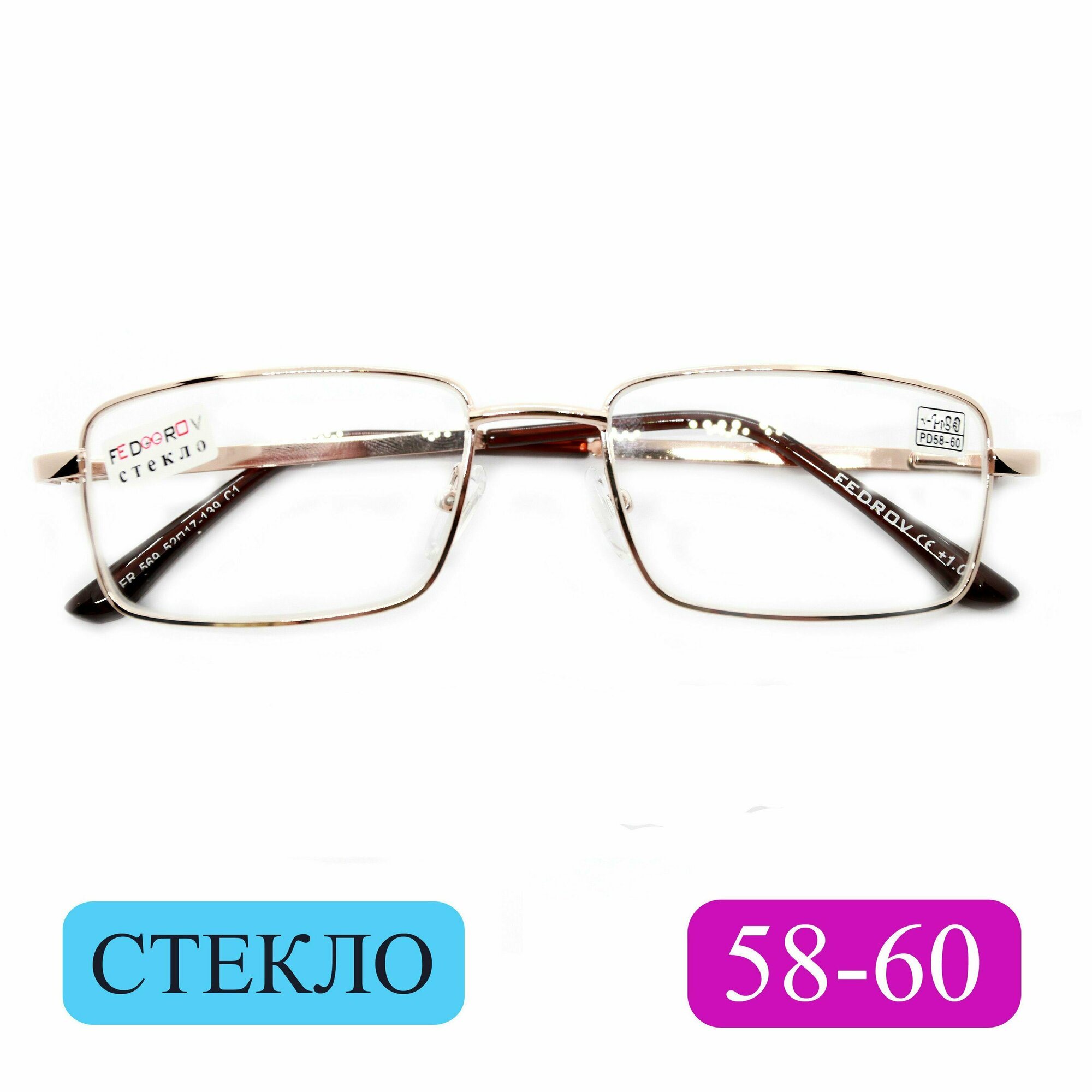 Готовые очки стекло расстояние 58-60 (+1.25) Fedrov 569 C1, цвет золотой, линза стекло, с футляром, РЦ 58-60