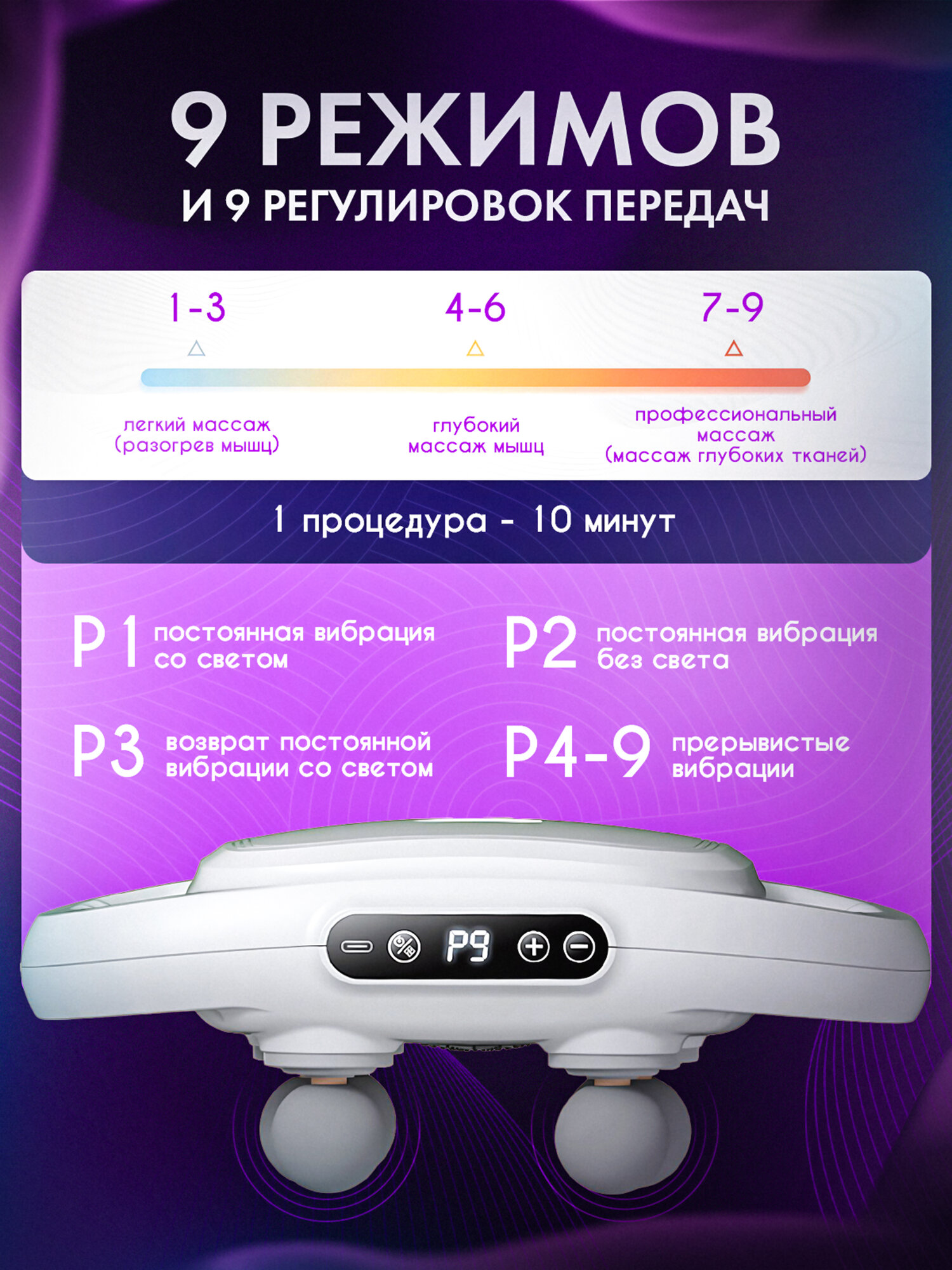 | Вид массажа | вибрационный / механический / перкуссионный / расслабляющий |