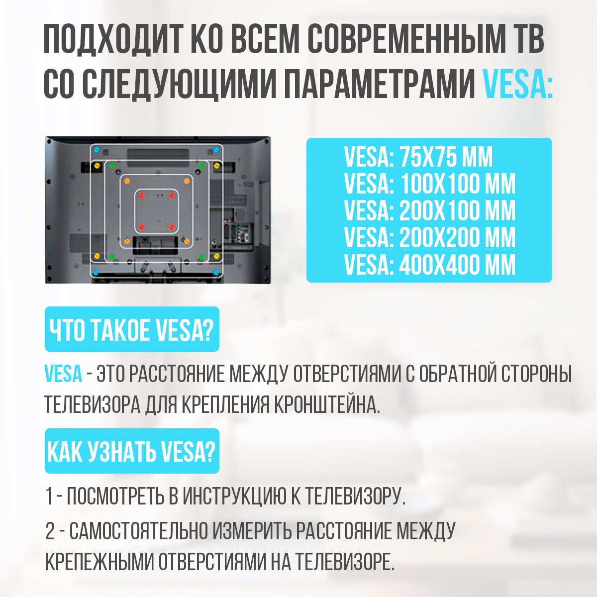 | Способ регулировки | наклон / наклон и поворот / отступ от стены / поворот |