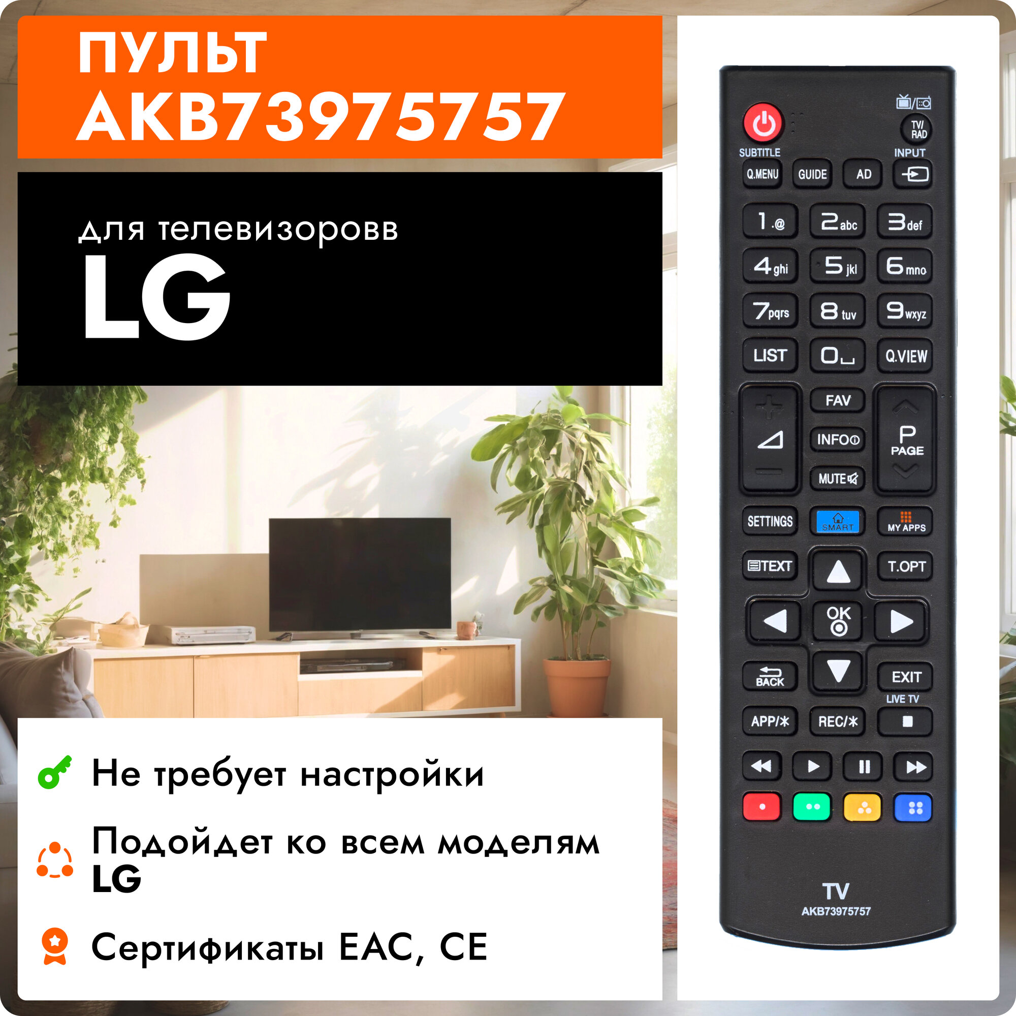 Пульт Huayu AKB73975757 для телевизора LG интересное: