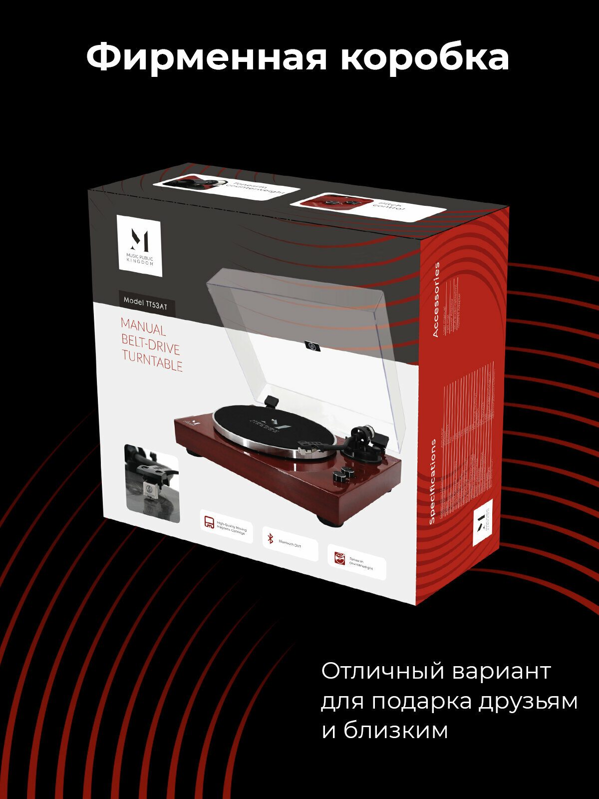 Виниловый проигрыватель Music Public Kingdom Red Wood (TT53AT) интересное: