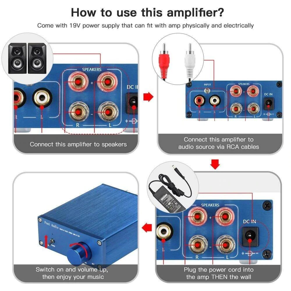 Купить Мини-усилитель класса d для домашних динамиков 50 Вт x 2, Gray with power