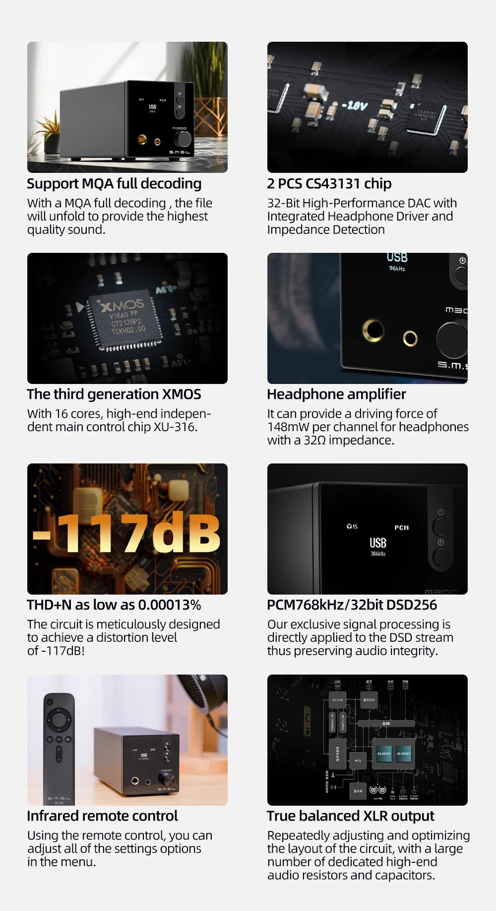 SMSL M300SE аудио ЦАП и наушники AMP M300 SE MQA CS43131 * 2 Blutetooth True сбалансированный XLR 6,35/4,4 мм XU316 DSD256 пульт дистанционного управления