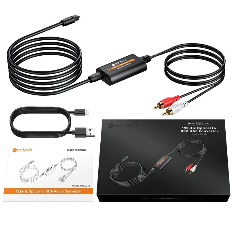 "Neoteck SPDIF to RCA Converter" - черный оптический SPDIF-конвертер с встроенным усилителем