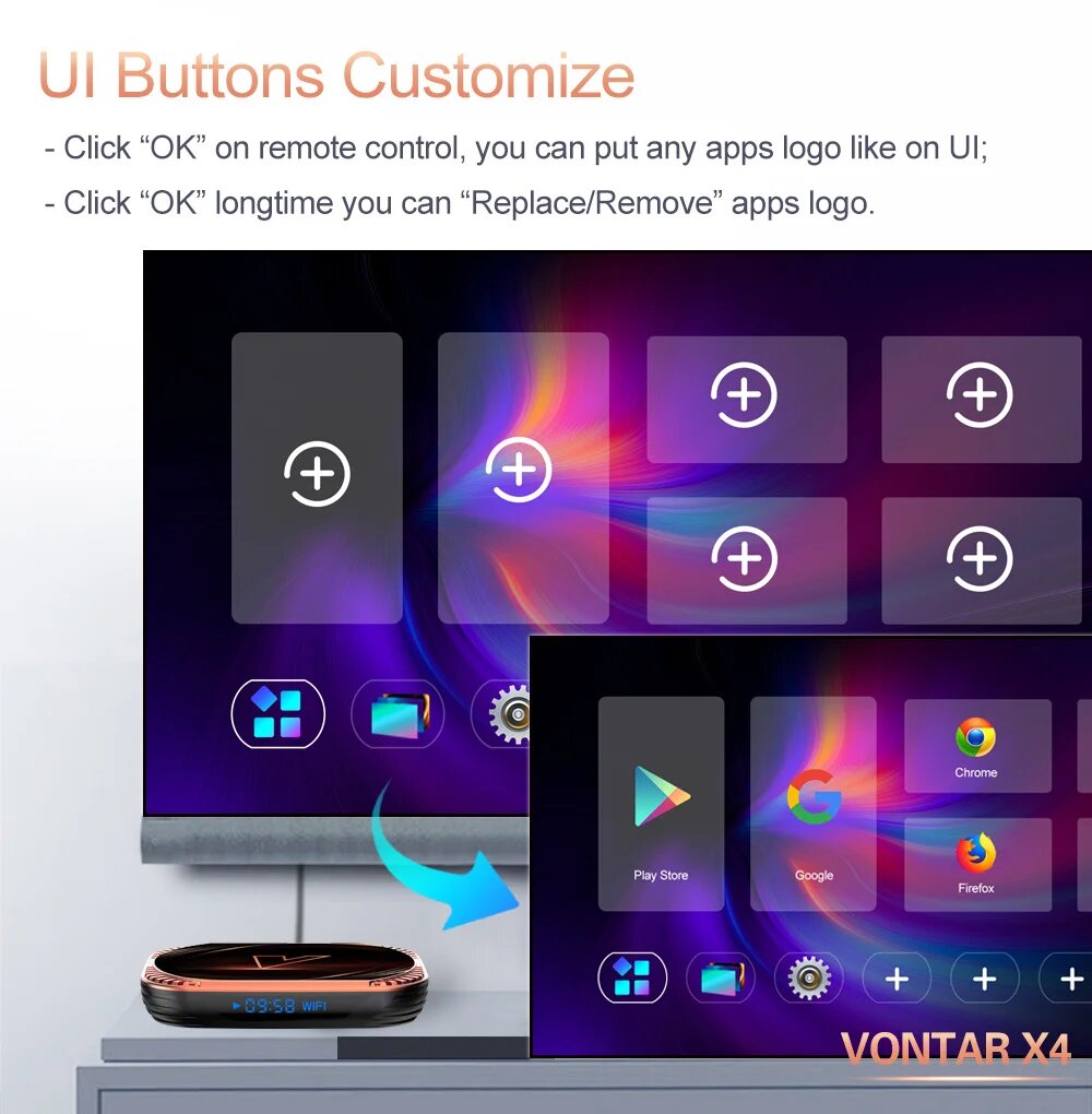 ТВ-приставка VONTAR X4, 4+32/64/128 ГБ, Android 11, комплектация на выбор, 4GB 64GB backlit i8, Европейская