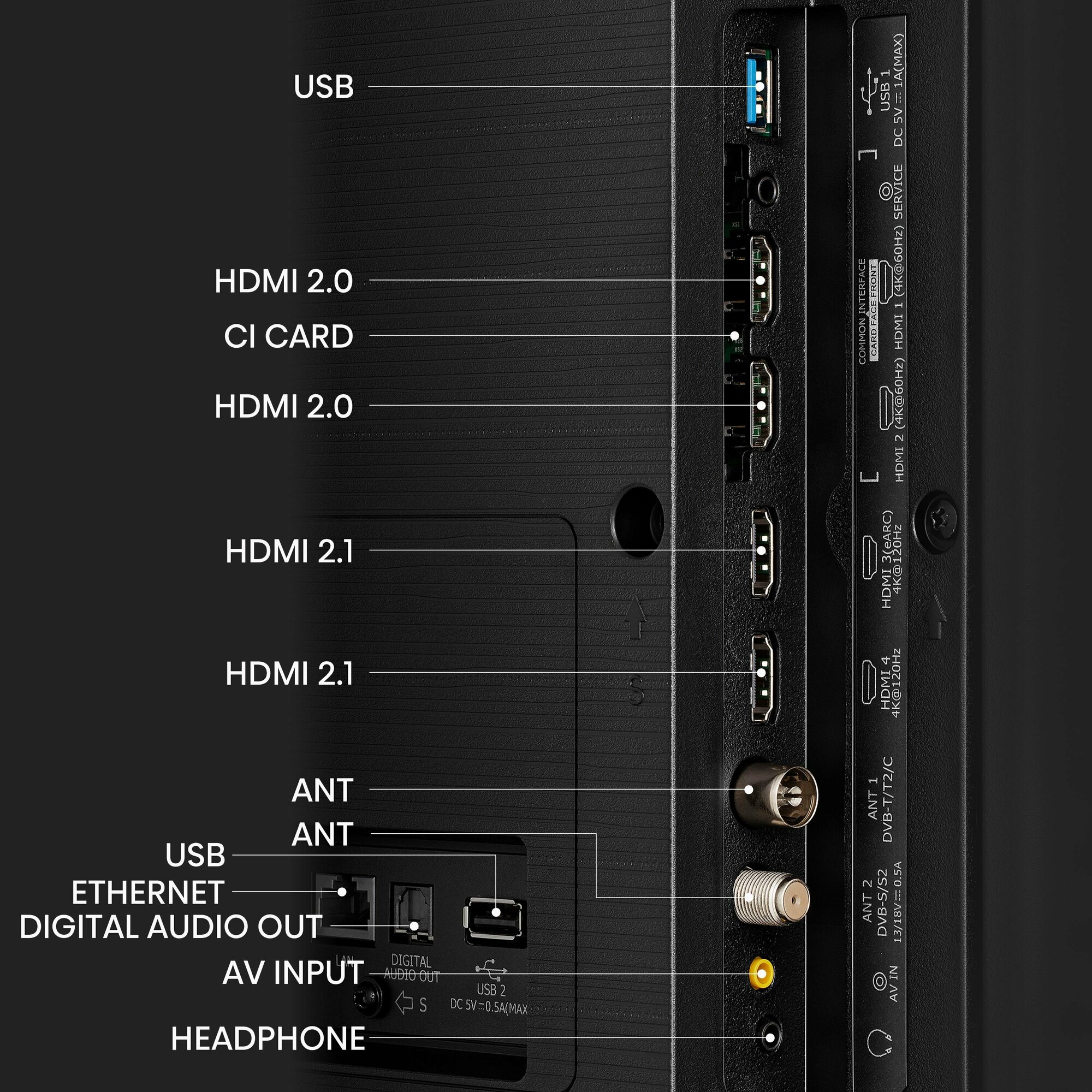 | Разъемы и интерфейсы | AV-вход / Ethernet - RJ-45 / SCART / USB Type-A / USB Type-A x 2 / вход HDMI / вход HDMI x 2 / вход HDMI x 3 / вход HDMI x 4 / вход VGA / вход аудио / выход аудио цифровой оптический / выход на наушники / композитный видеовход / компонентный видеовход / слот CI / слот CI x 2 / слот CI/CI+ |