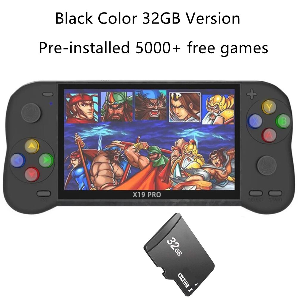 Портативная игровая приставка, 5 дюймов, 8 + 32 ГБ, 2000 игр, X19 Black 32GB интересное: