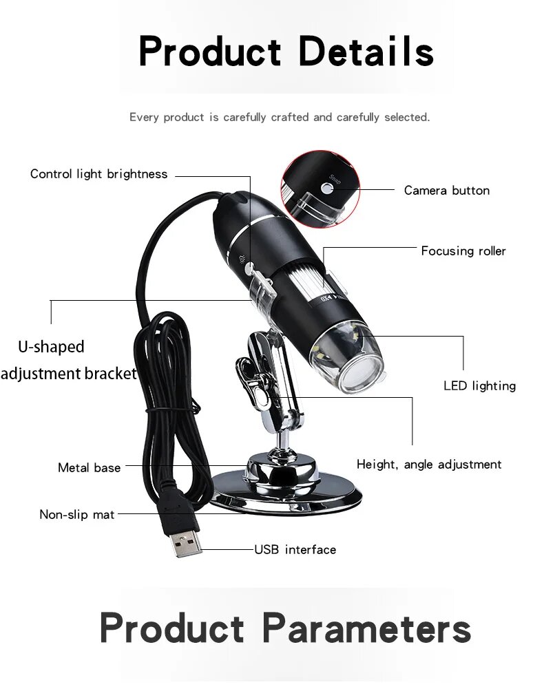 Купить Портативный электронный микроскоп, 1000 крат, USB, 8 светодиодов, no stand