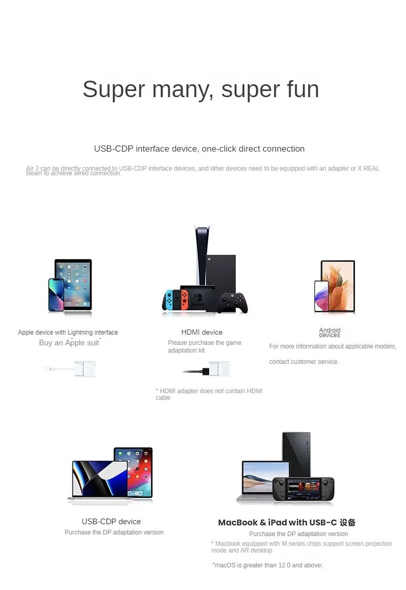 Смарт-очки XREAL Air 2 AR, 2023 микро-OLED экран, 120 Гц, высокая кисть, 72 г, ультра-яркие, профессиональные, точность цвета, сертификат