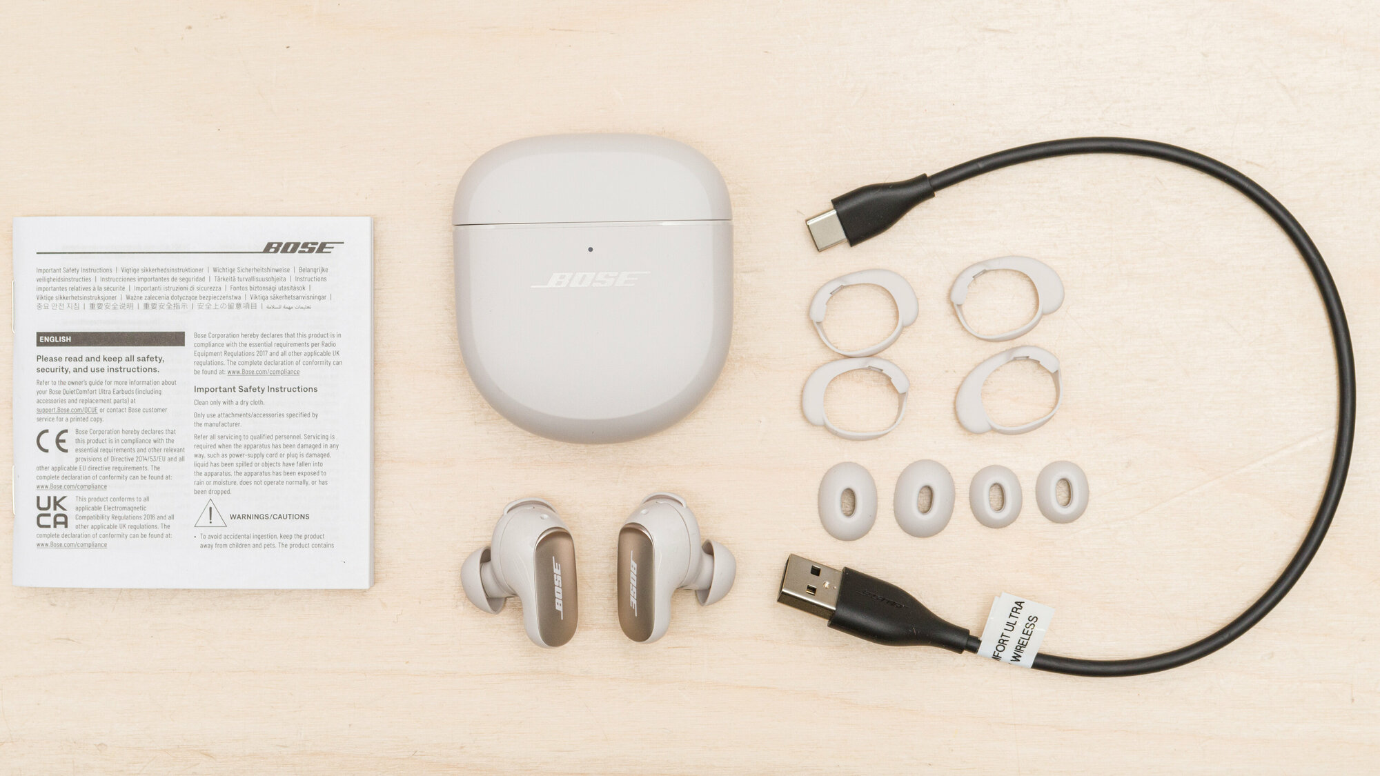 | Комплектация | Bose Ultra Open Earbuds, зарядный кейс, кабель USB-C (A to C) (30,5 см), гид для быстрого старта, инструкция по безопасности |
