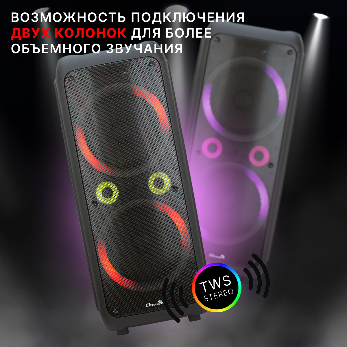 Колонка 12" (20-83 DANCE BOX 1500) динамик 2шт/12" ELTRONIC с TWS и FM