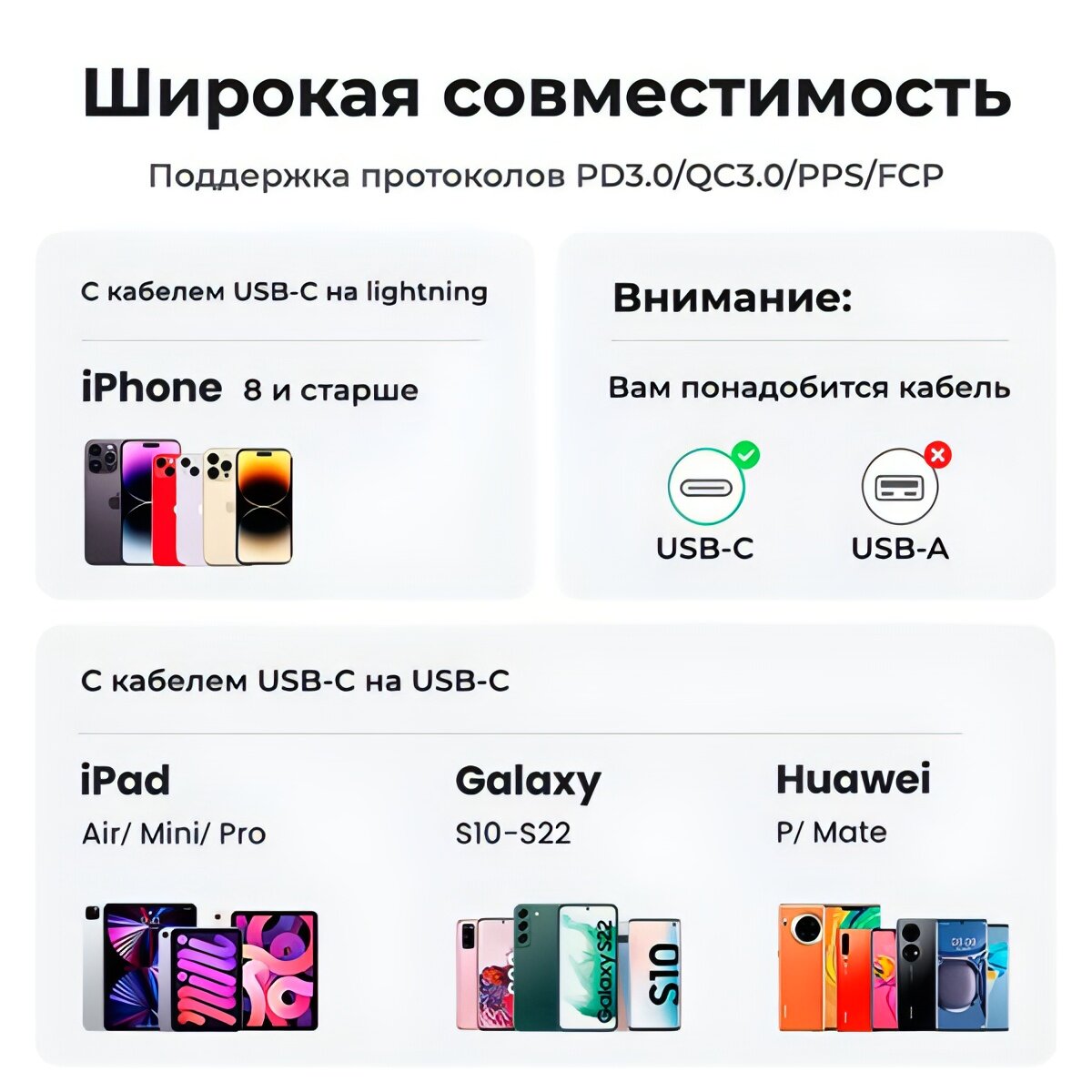 | Особенности | GaN / Быстрая зарядка / защита от перегрева / защита от перенапряжения |