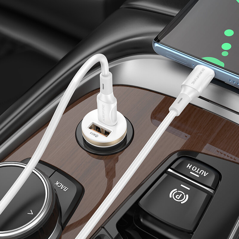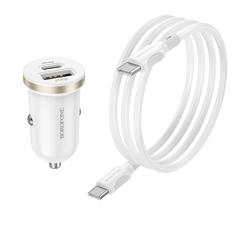 Автомобильное зарядное устройство BOROFONE BZ22 Scenery, 1xUSB + 1xUSB-C с Кабелем Type-C - Lightning, 30W, белый
