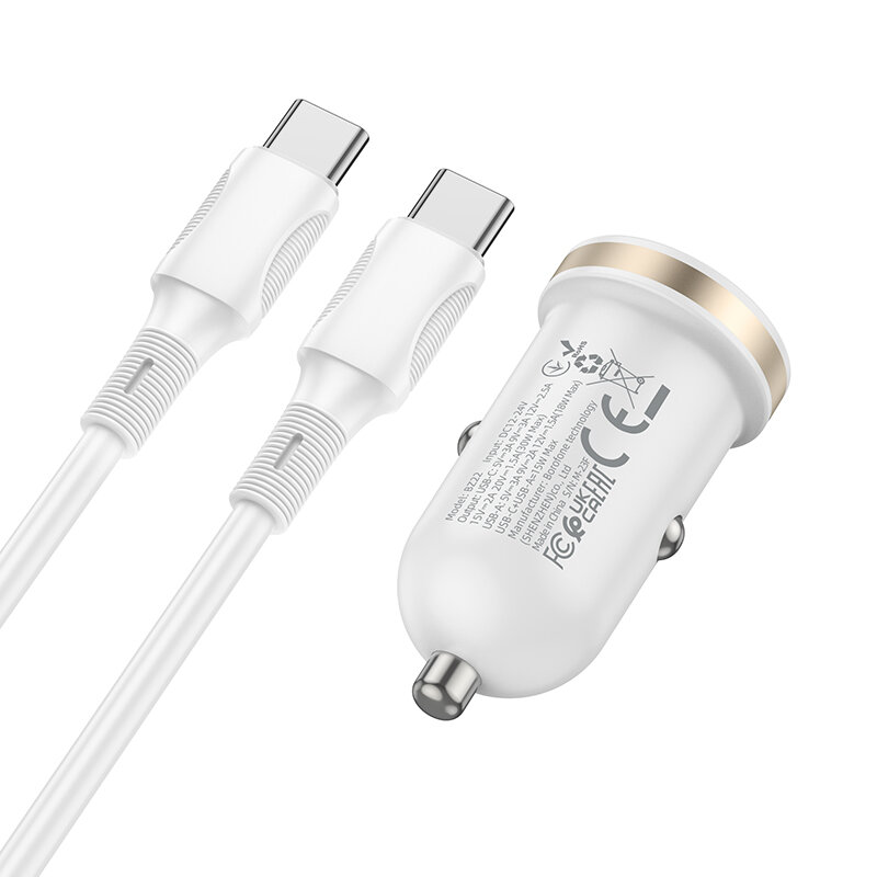 Купить Автомобильное зарядное устройство (АЗУ) Borofone BZ22 QC 3.0 (USB+Type-C) + кабель Type-C-Type-C, 3 A, белый
