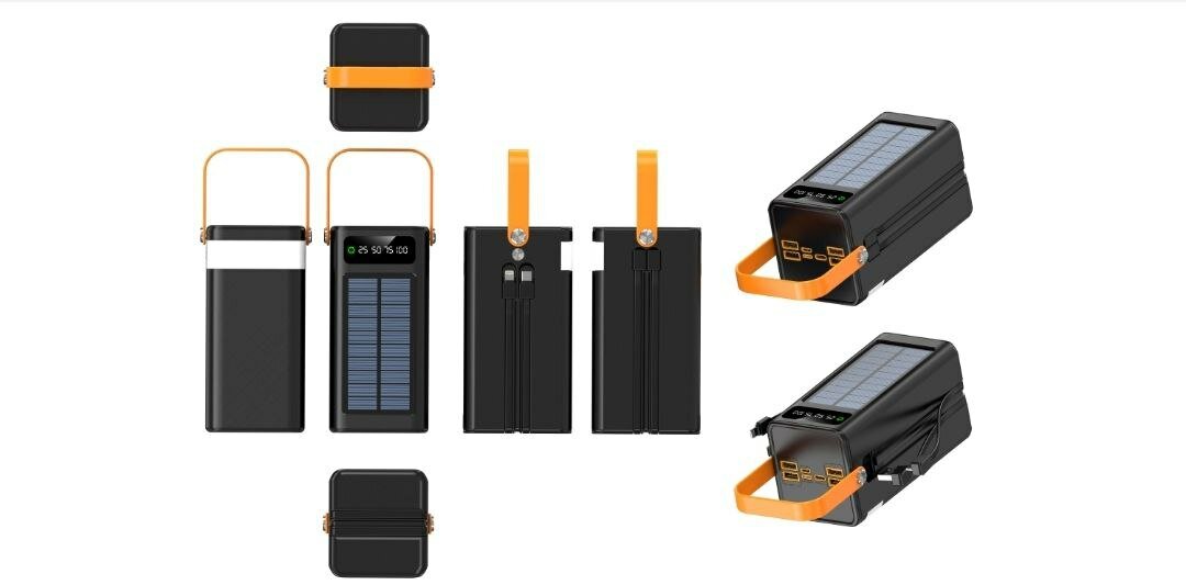 SENNBEYER power bank 30000 мАч, солнечная батарея, с кабелем и экраном.