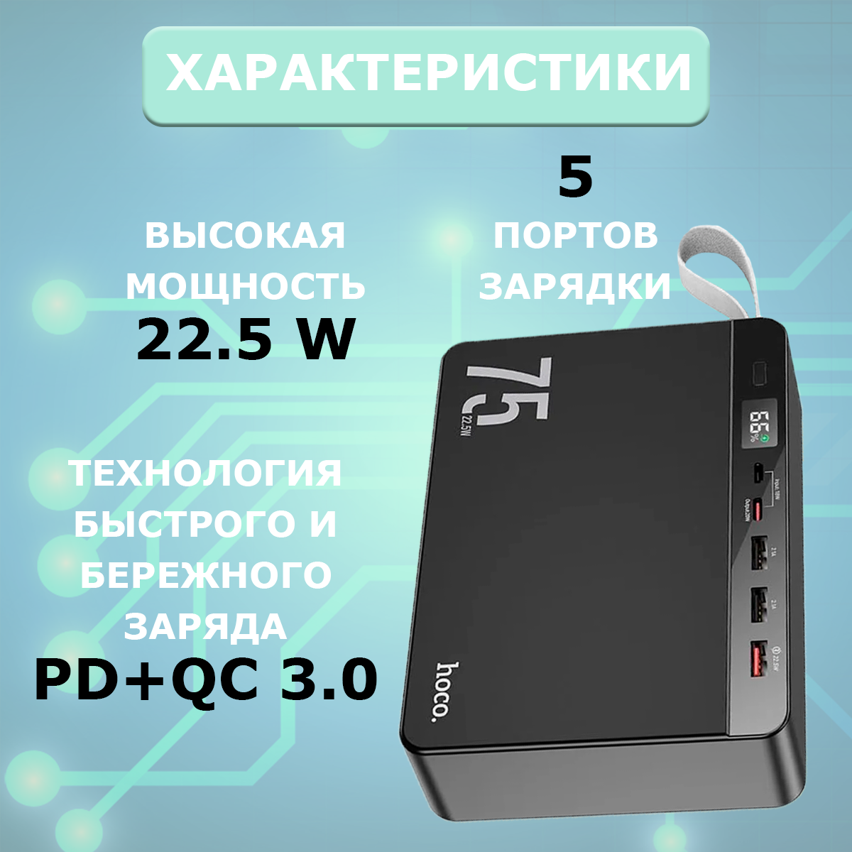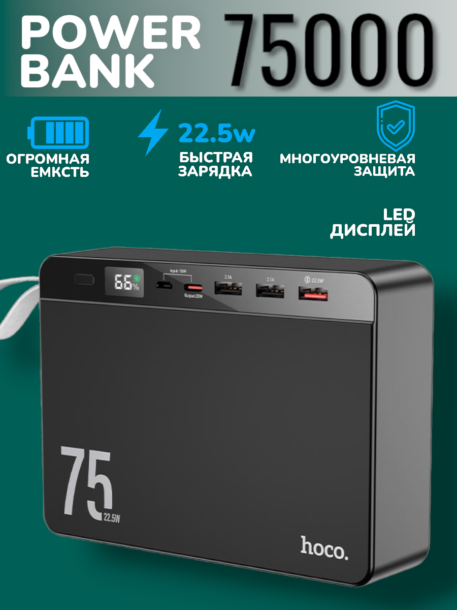 СохранитьPower Bank 75000mAh Портативный аккумулятор “J94 Overlord” 22.5W 75000mAh черный интересное: