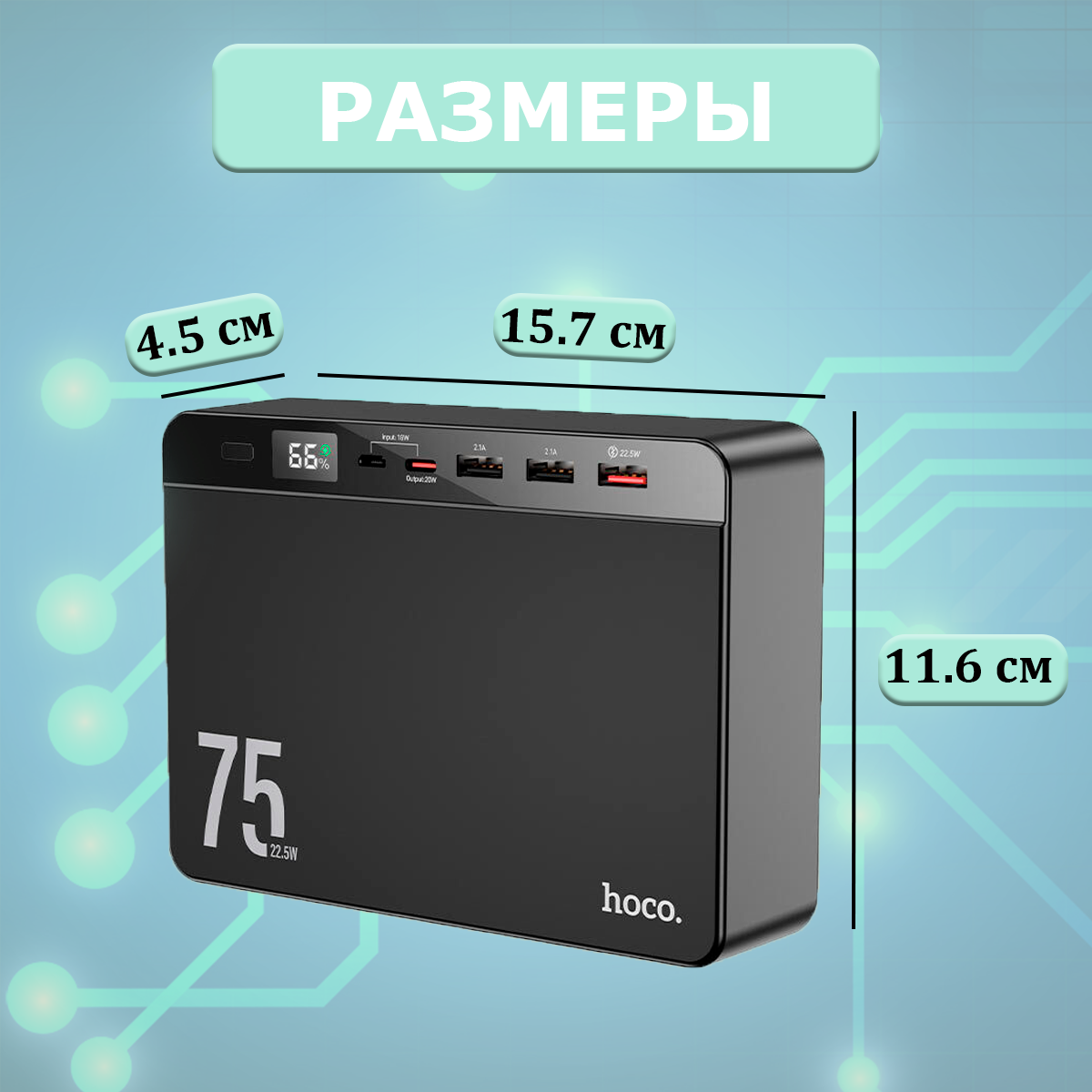 Повербанк Hoco J110A 60000mAh 65W с быстрой зарядкой, черный