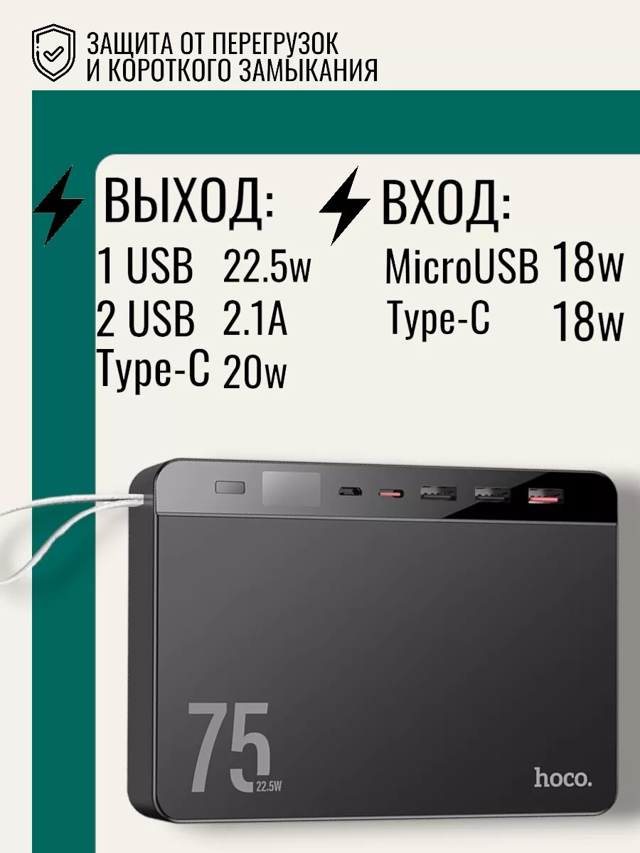 Повербанк Hoco DB21, 80000 mAh с быстрой зарядкой, черный