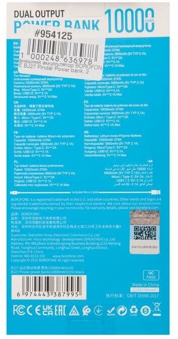 Powerbank Borofone BJ27 10000mAh 2USB черный интересное: