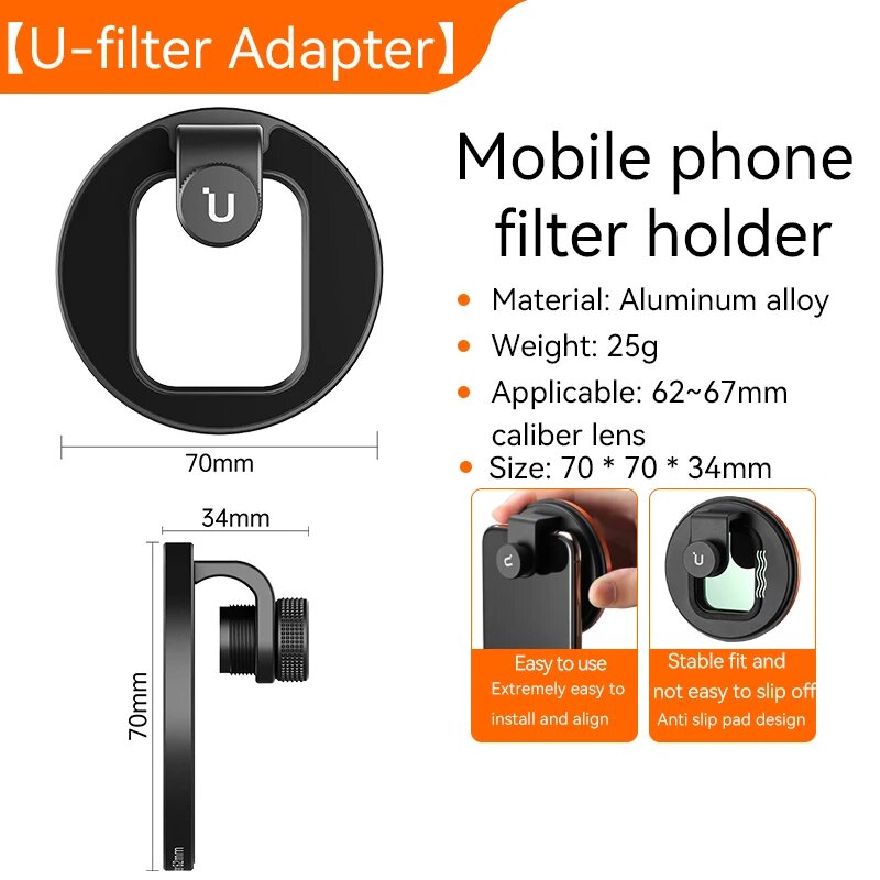 Ulanzi U-Fliter 67 мм UV ND CPL фильтр адаптер крепление для смартфона металлический фильтр адаптер кольцо для iPhone 13 14 15 Pro Max Mini Huawei, 67mm Filter интересное: