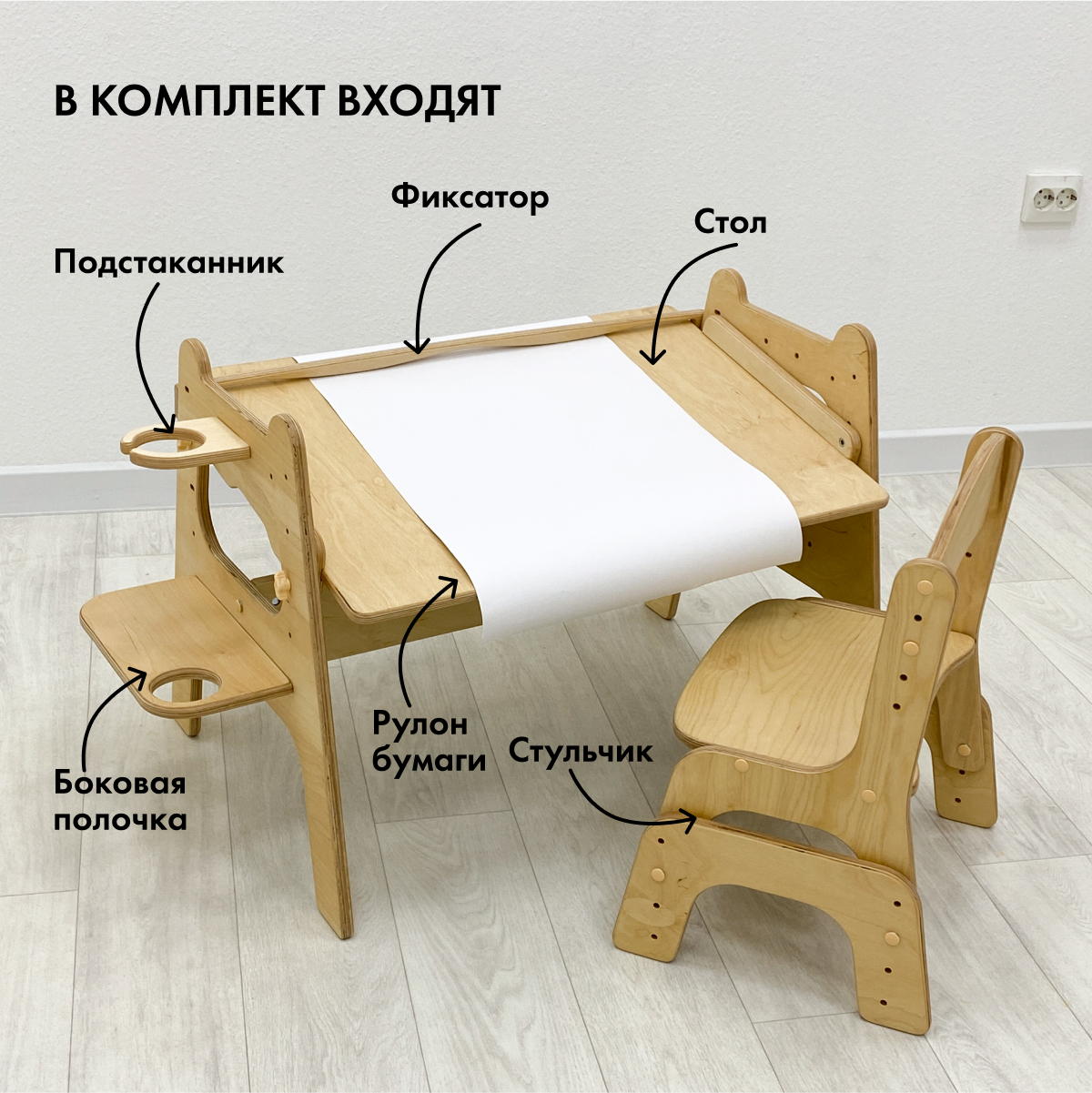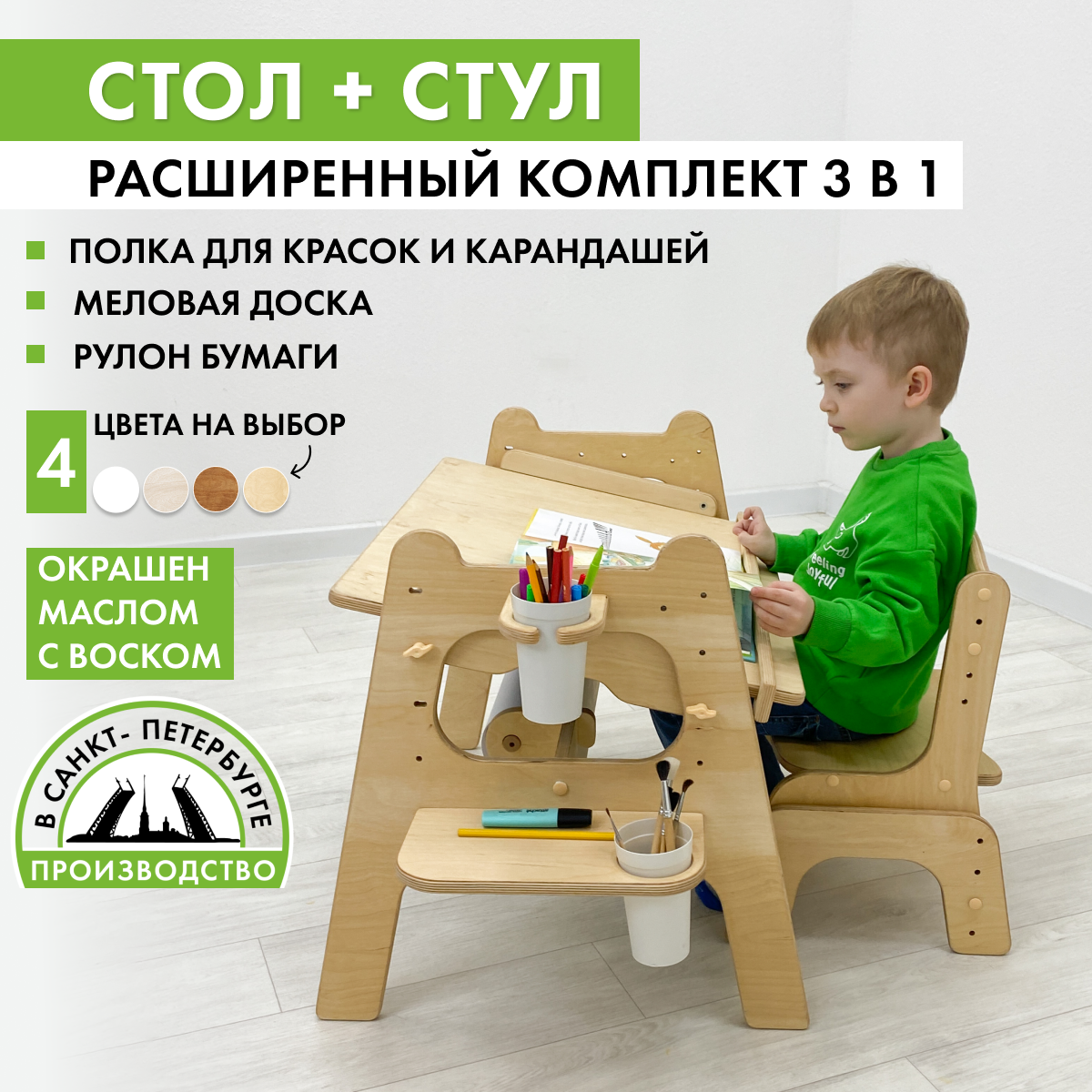 Купить Стол детский Малышок и растущий стул, полная комплектация, прозрачное масло