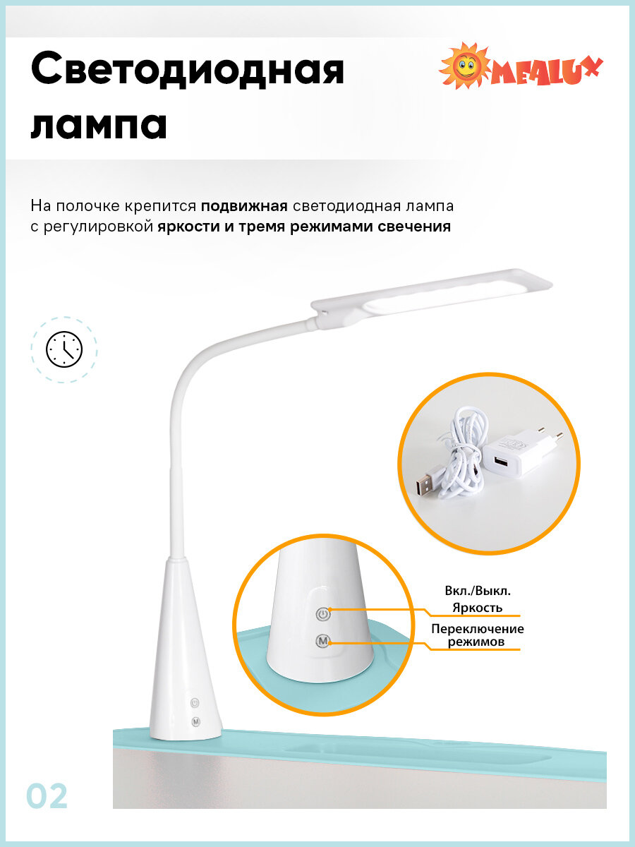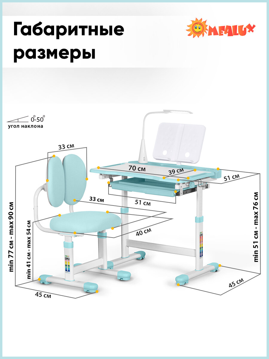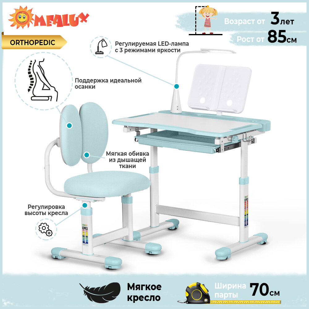 Растущая детская парта стол с лампой (длина столешницы 70 см) и стул (мягкое кресло) BD-20 BL интересное: