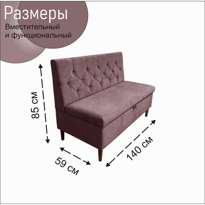 Диван на кухню "Рико" с ящиком для хранения/Велюр/Розовый 140x59x85