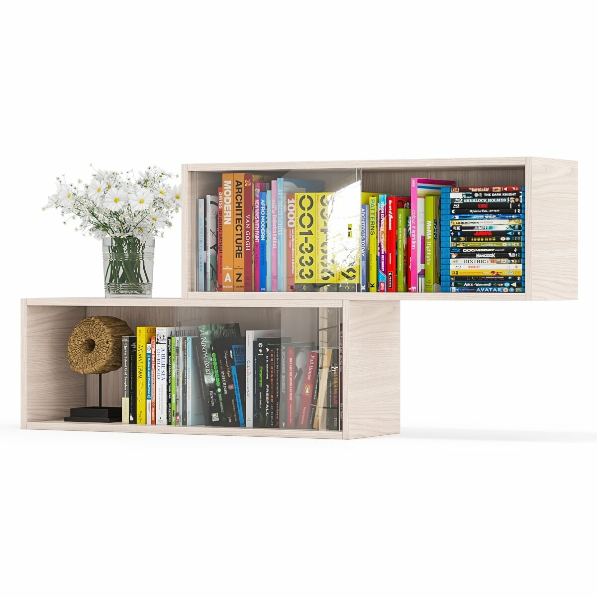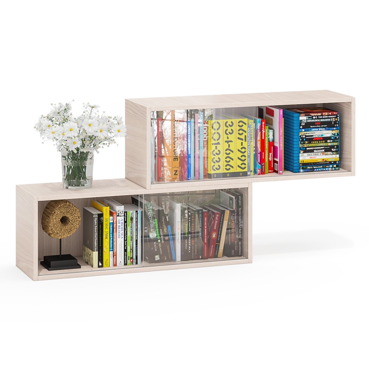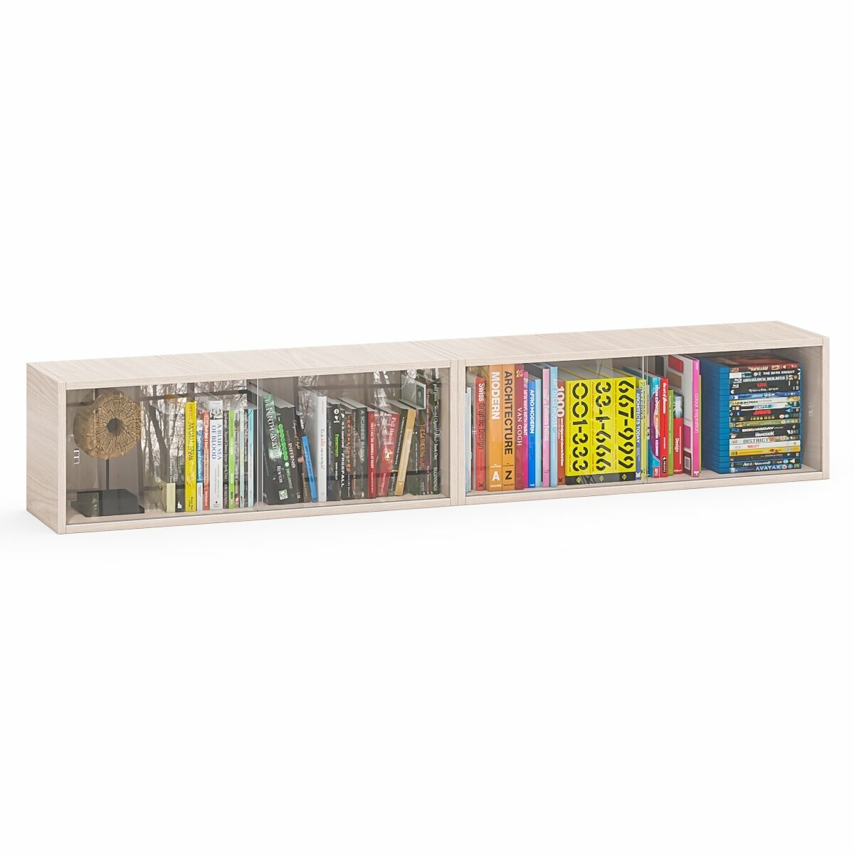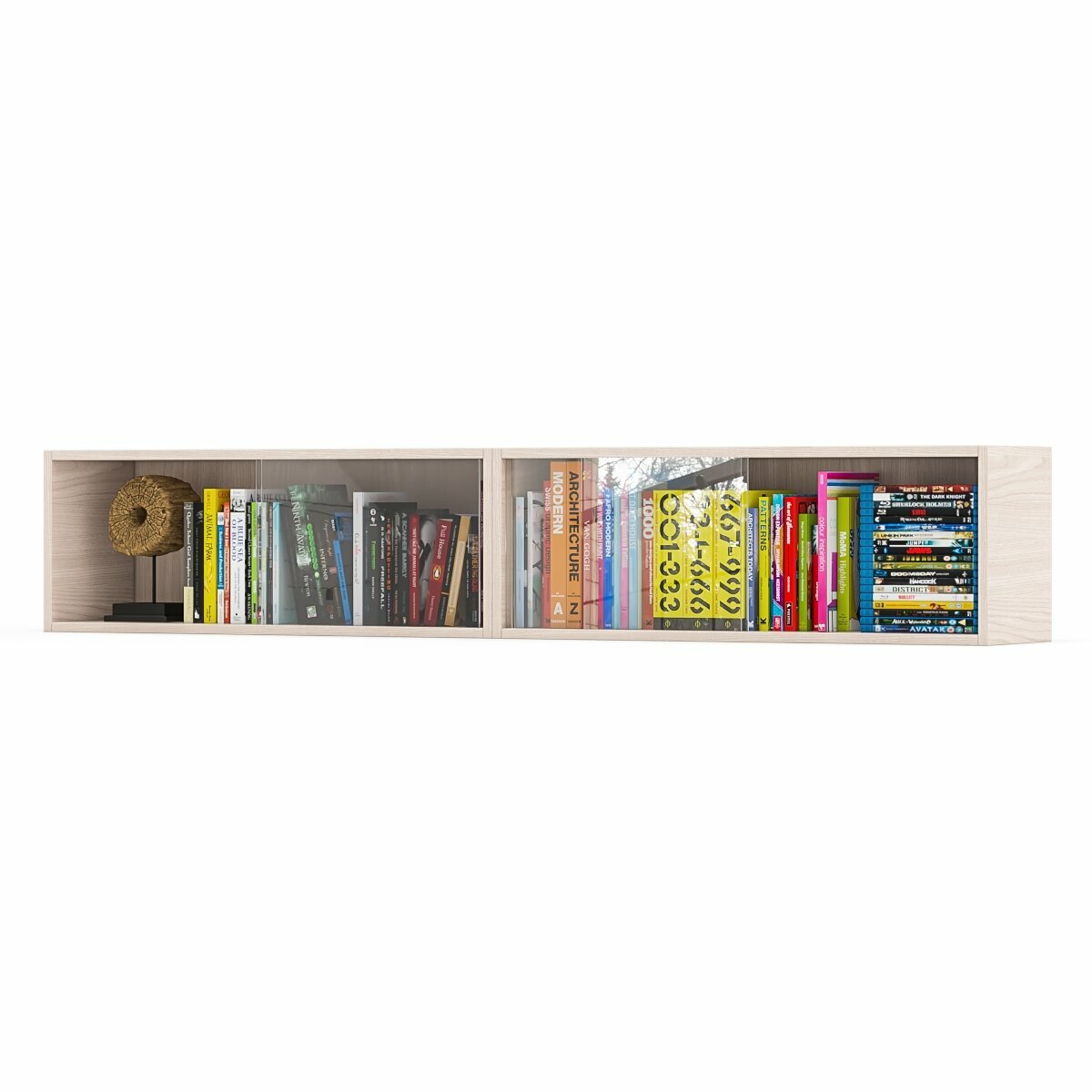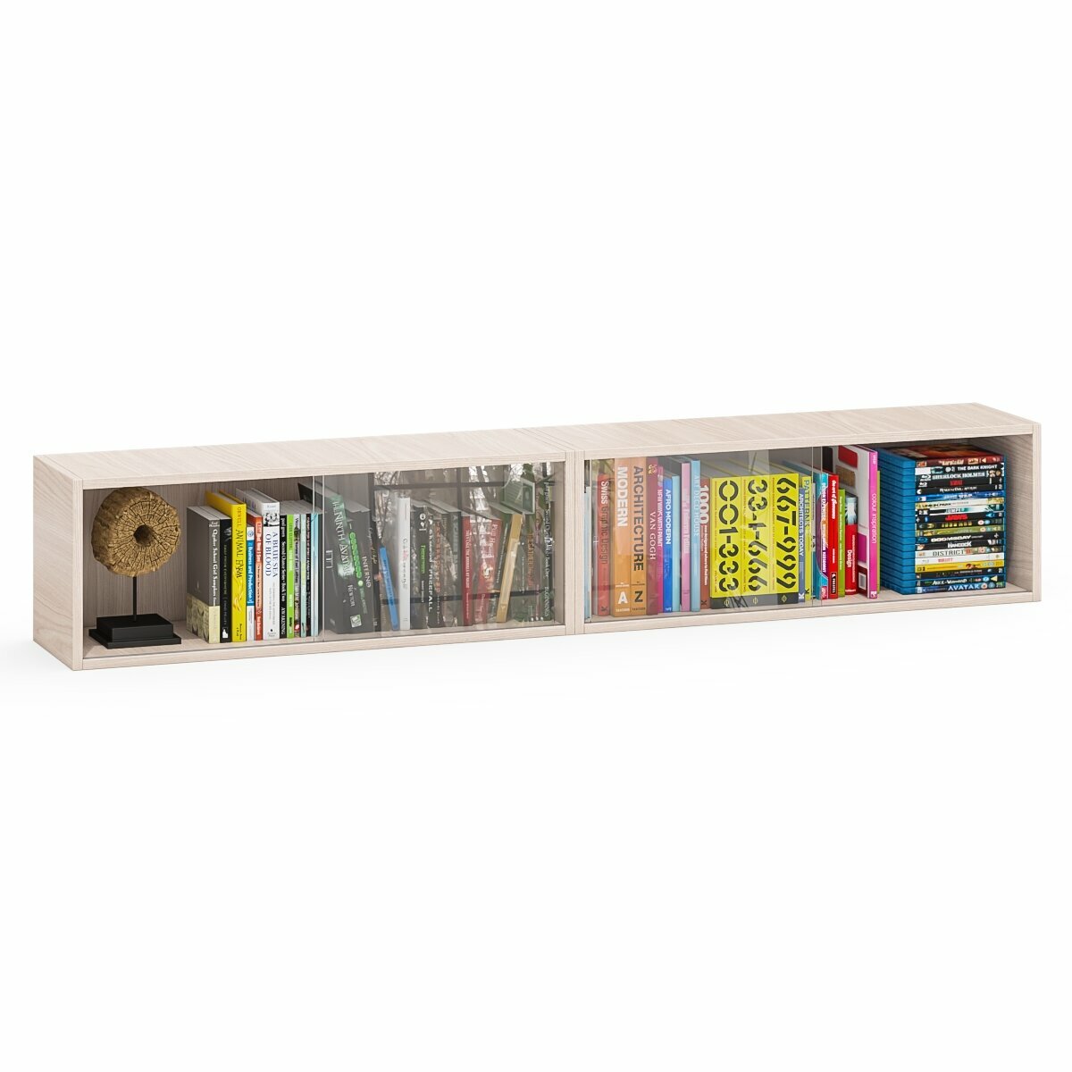 Купить Комплект из двух книжных полок со стеклом Мебельный Двор КН-01 цвет ясень шимо светлый