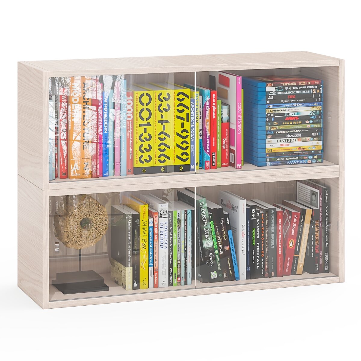 Три книжные полки Мебельный Двор КН1 со стеклянными сдвижными дверками цвет шимо светлый