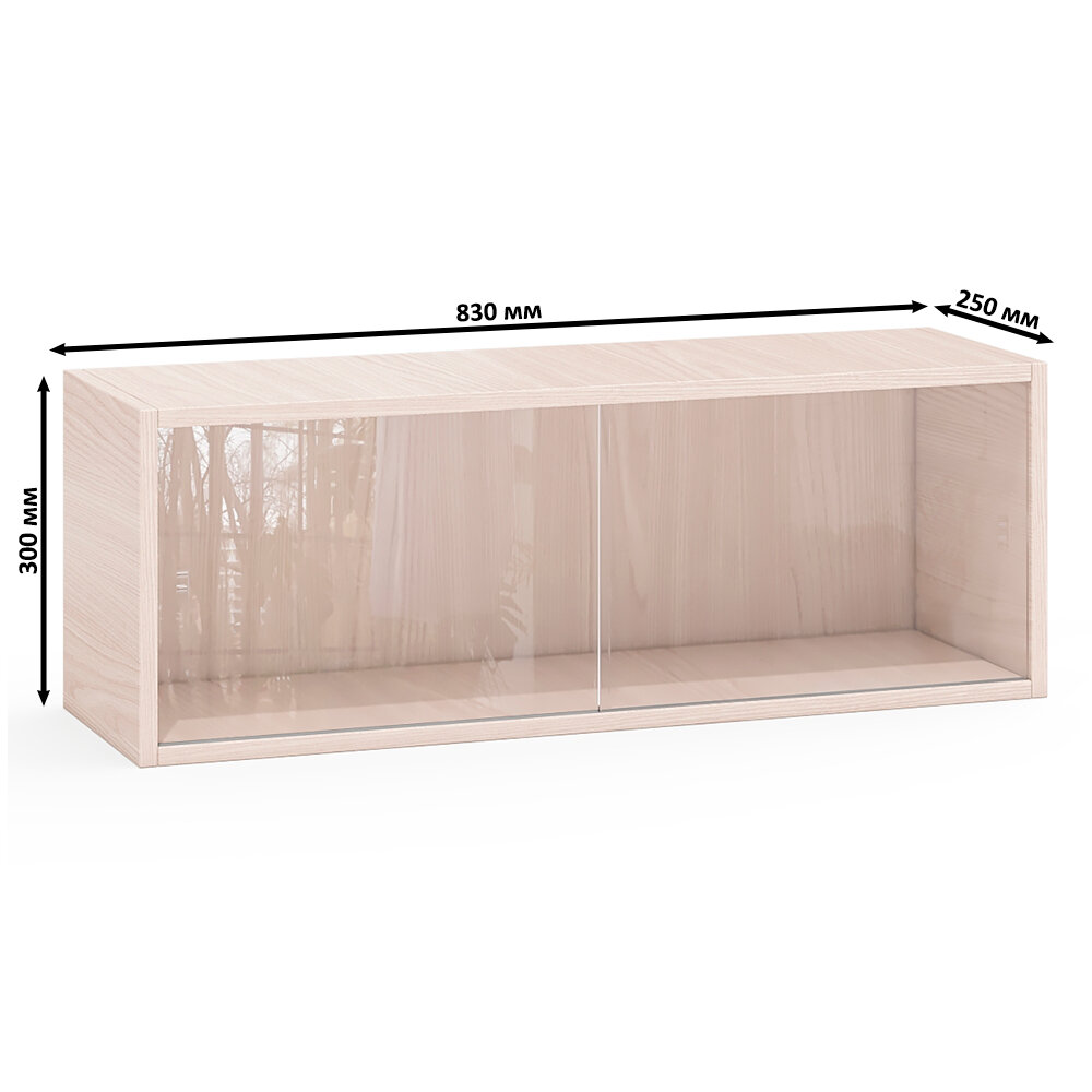 Полка книжная со стеклом Мебельный Двор С-МД-КН01 цвет ясень шимо светлый, 83х25х30 см