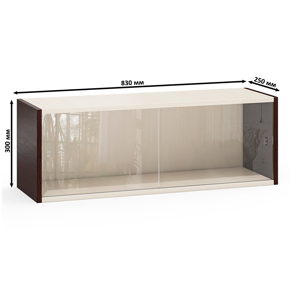 Полка книжная КН-01, цвет венге, ШхГхВ 83х25х30 см, стеклянные дверцы (целиком венге !)