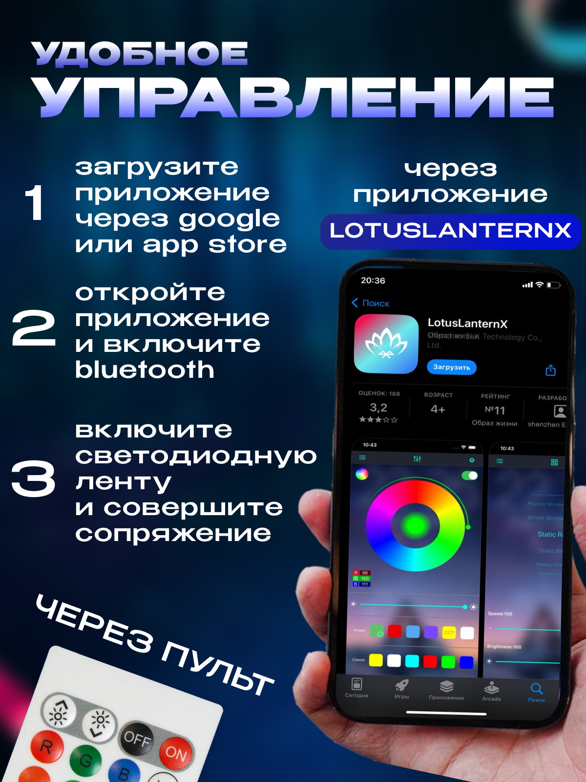 | Дополнительная информация | Светодиодная лента с пультом управления RGB LED 15 м, от телефона |