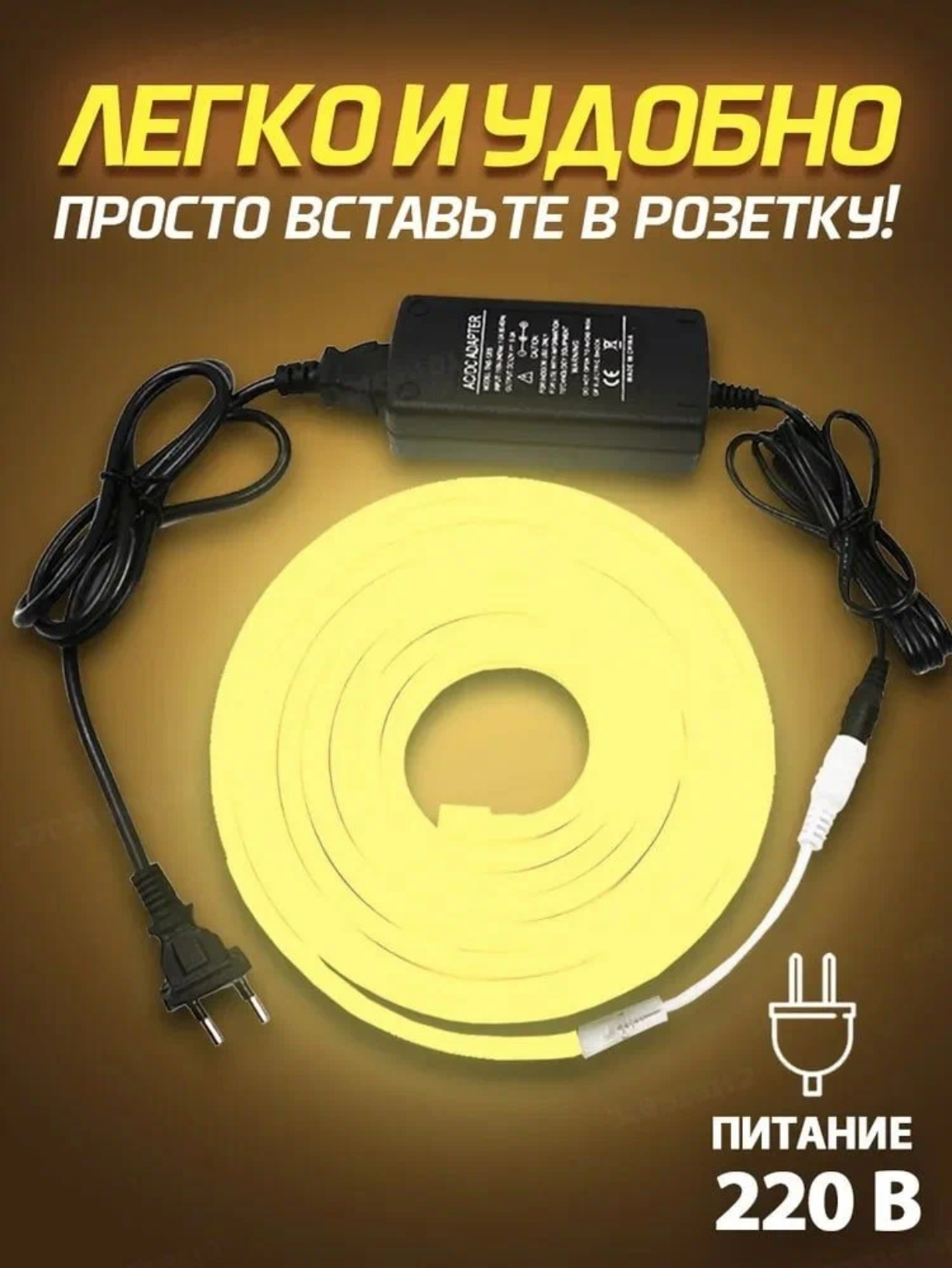 Светодиодная лента 5м, 220В, IP67, 120 LED/m Гибкий неон 5 метров, неоновая RGB лента, подсветка интерьера/Желтый / AZ Shop