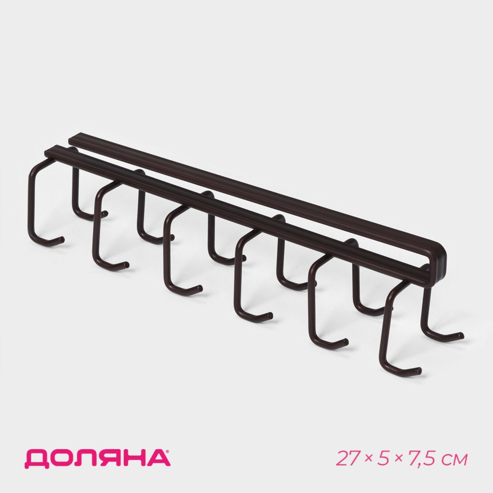 Держатель для кружек подвесной на 12 предметов Доляна, 27×5×7,5 см, цвет коричневый интересное: