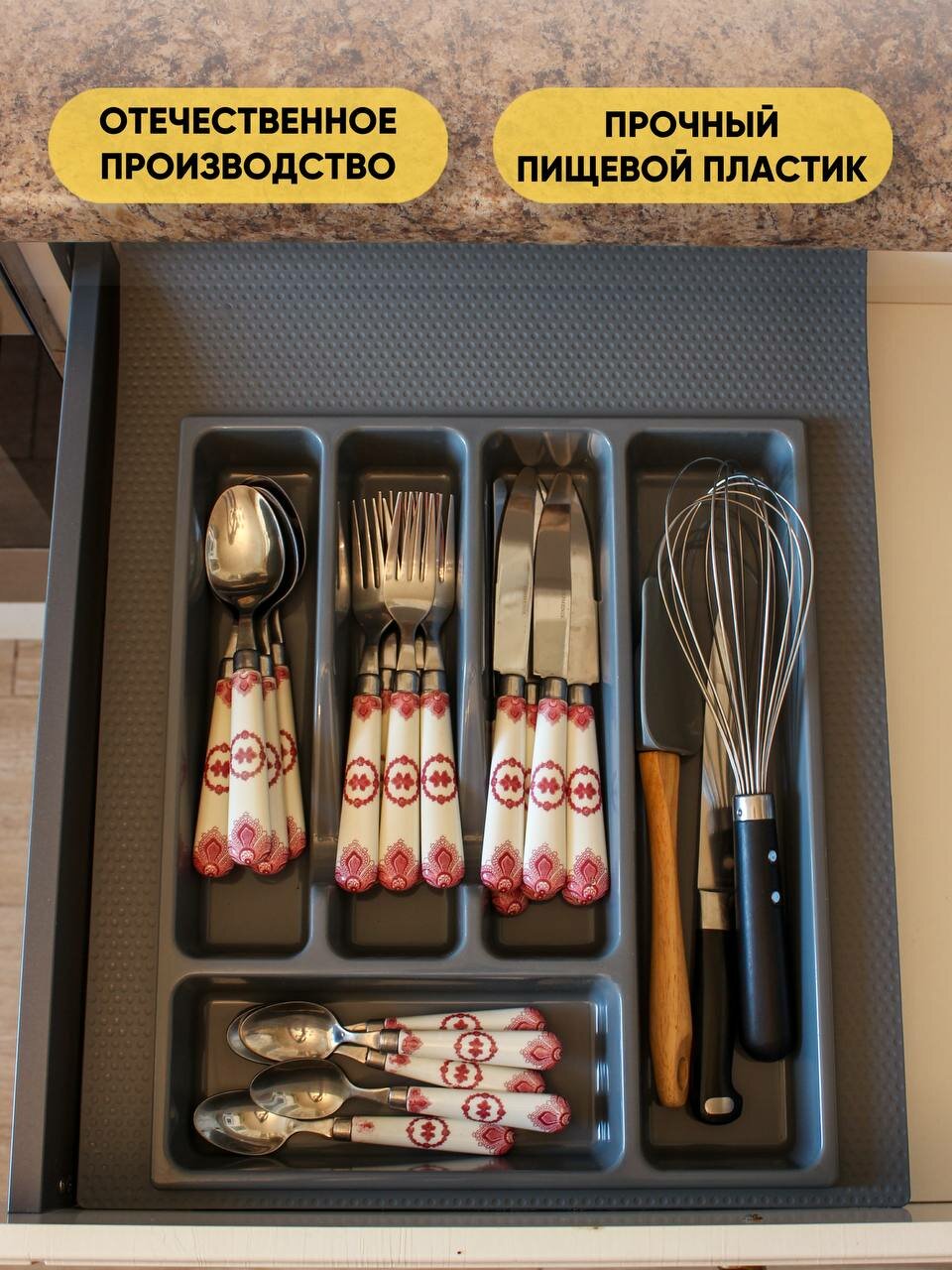 Лоток для столовых приборов в ящик/модуль/шкаф 600 мм Органайзер для столовых приборов серый Россия