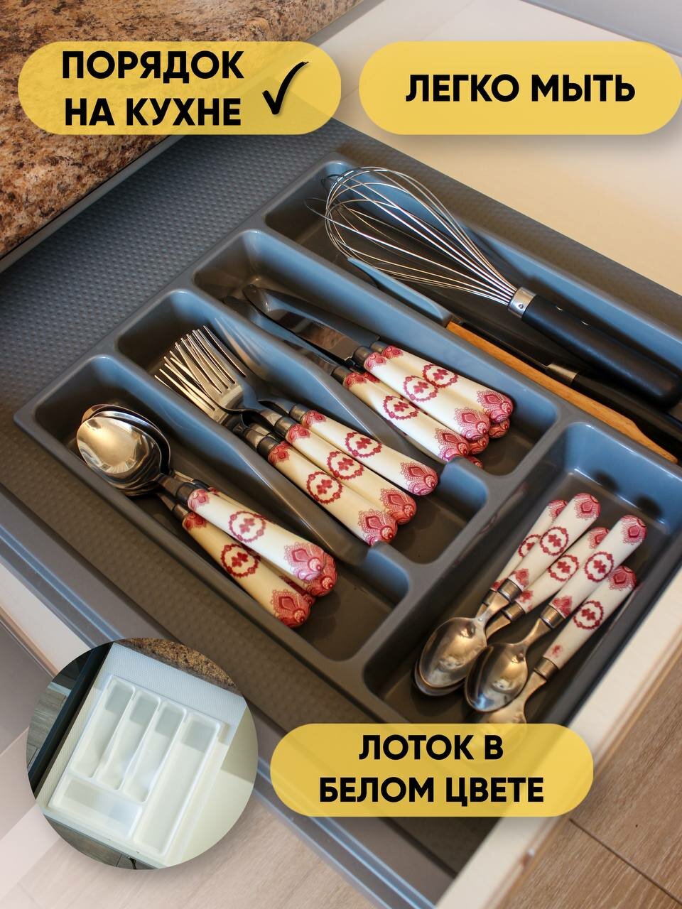 Лоток для столовых приборов в ящик/модуль/шкаф 400 мм Органайзер для столовых приборов серый Россия интересное: