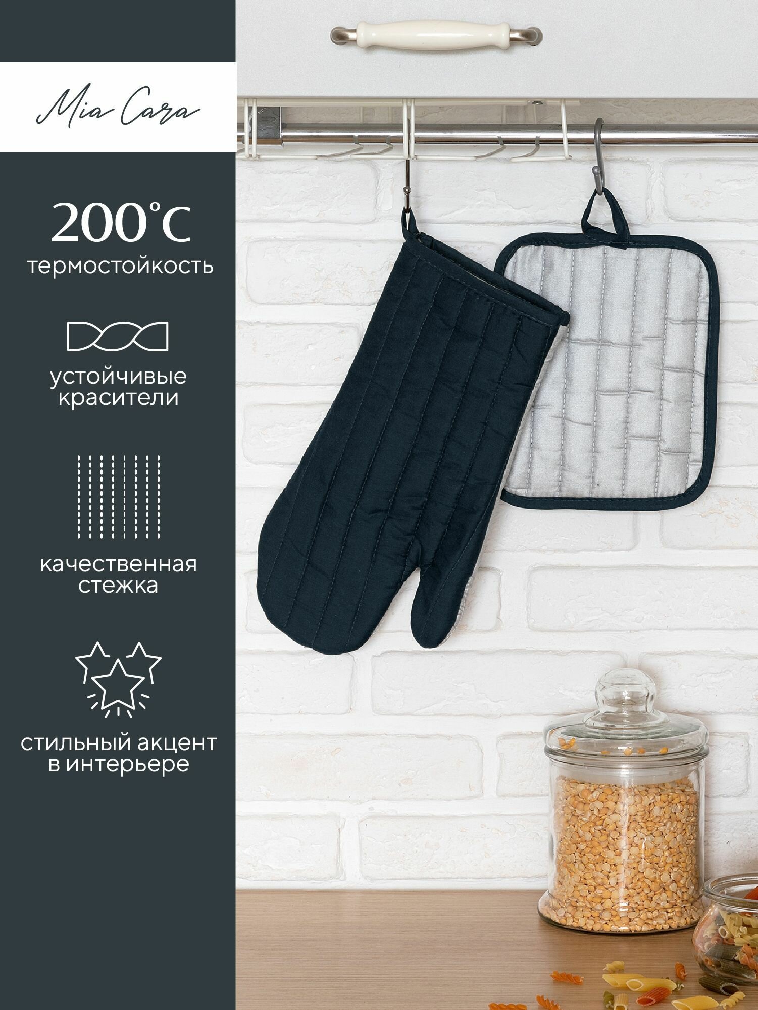 Купить Набор для кухни (прихватка 18х20+рукавица 18х33) "Mia Cara" черный (лицевая часть - 100% полиэстер, задняя часть 80% полиэстер, 20 % хлопок)