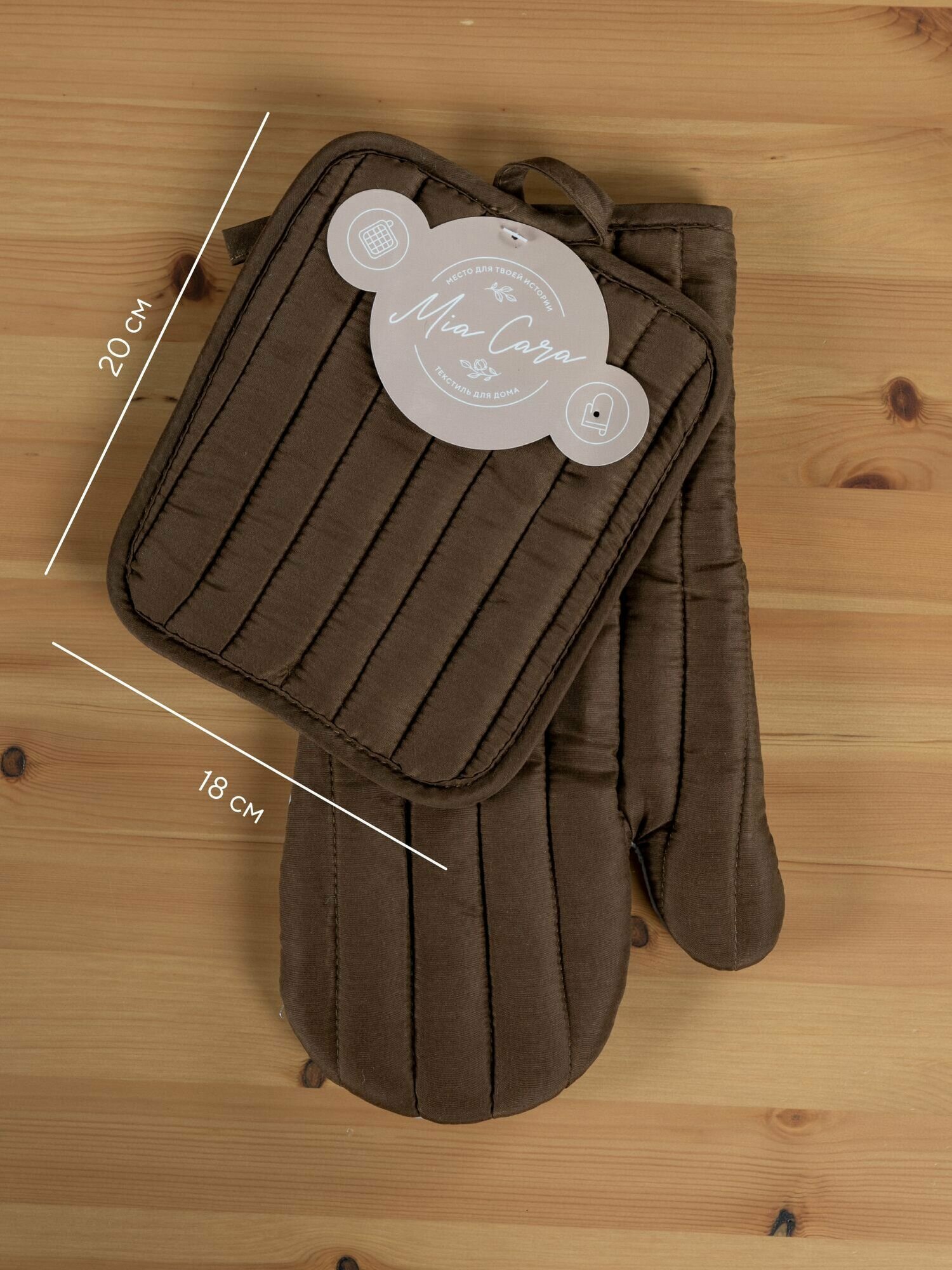 Кухонный набор (прихватка 18х20+рукавица 18х33) "Mia Cara" коричневый (лицевая часть - 100% полиэстер, задняя часть 80% полиэстер, 20 % хлопок)