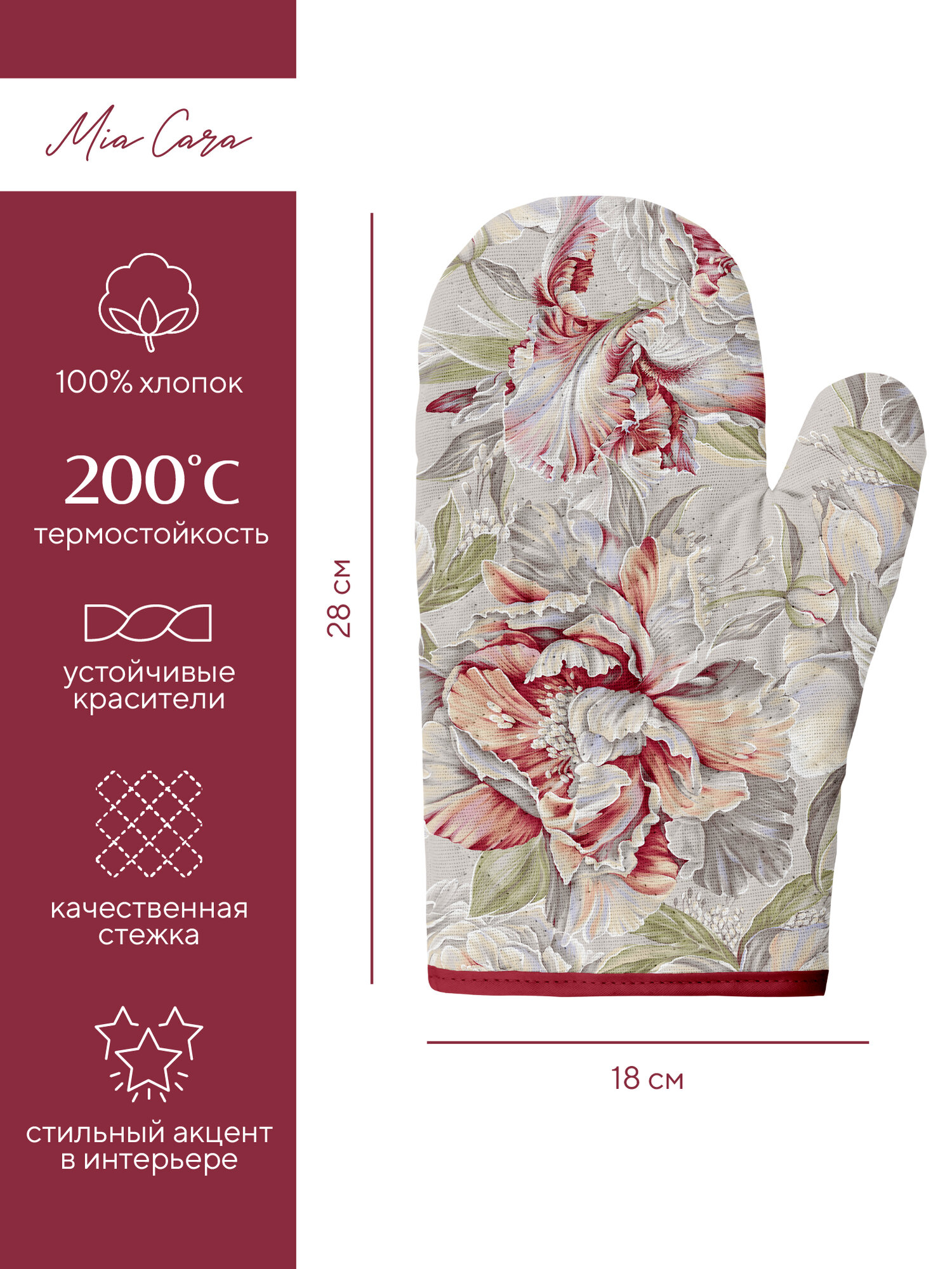 Купить Подарочный набор прихватки для кухни (прихватка 18х18, прихватка-рукавица 18х28) "Mia Cara" рис 14057-1 Душистый пион