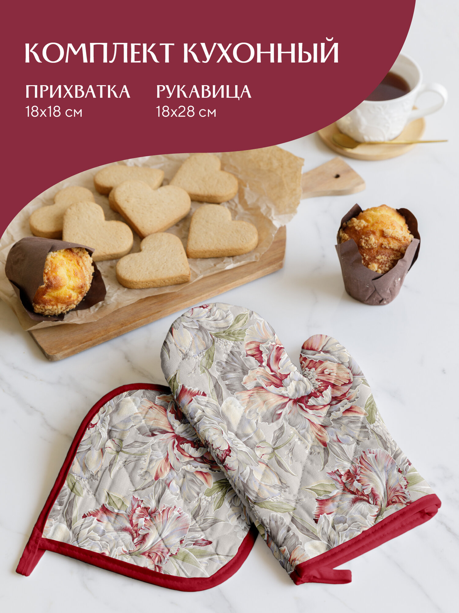 Подарочный набор прихватки для кухни (прихватка 18х18, прихватка-рукавица 18х28) "Mia Cara" рис 30625-1 Scarlet