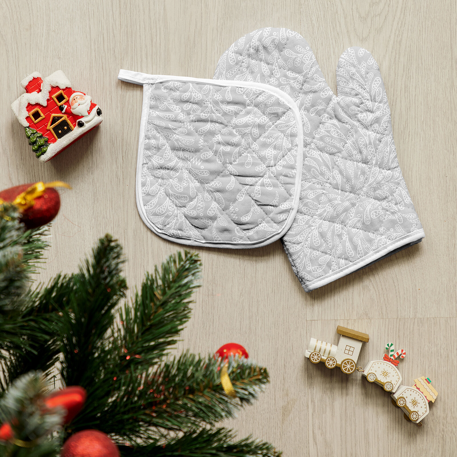 Подарочный набор прихватки для кухни (прихватка 18х18, прихватка-рукавица 18х28) "Mia Cara" рис 30300-2 Ожерелье